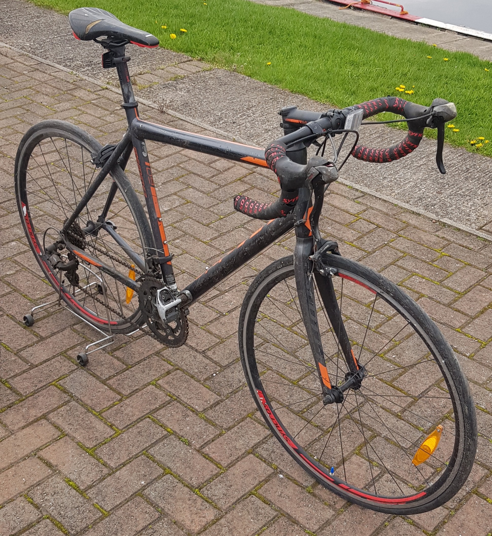 Three bicycles comprising an Active with lightweight aluminum mainframe, a Raleigh metro GLX and a Syncros speedster. (3)