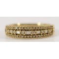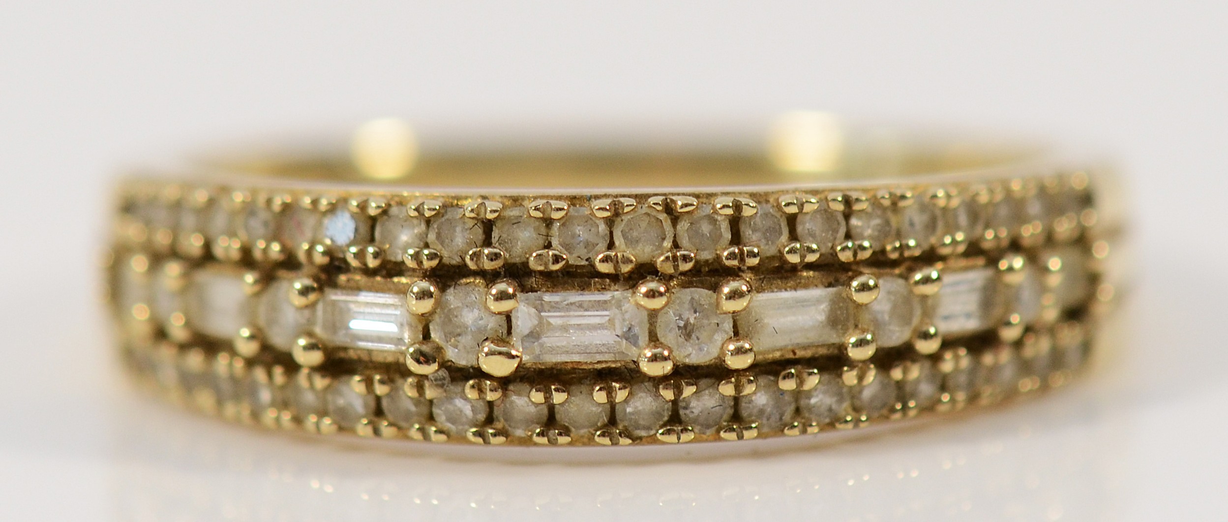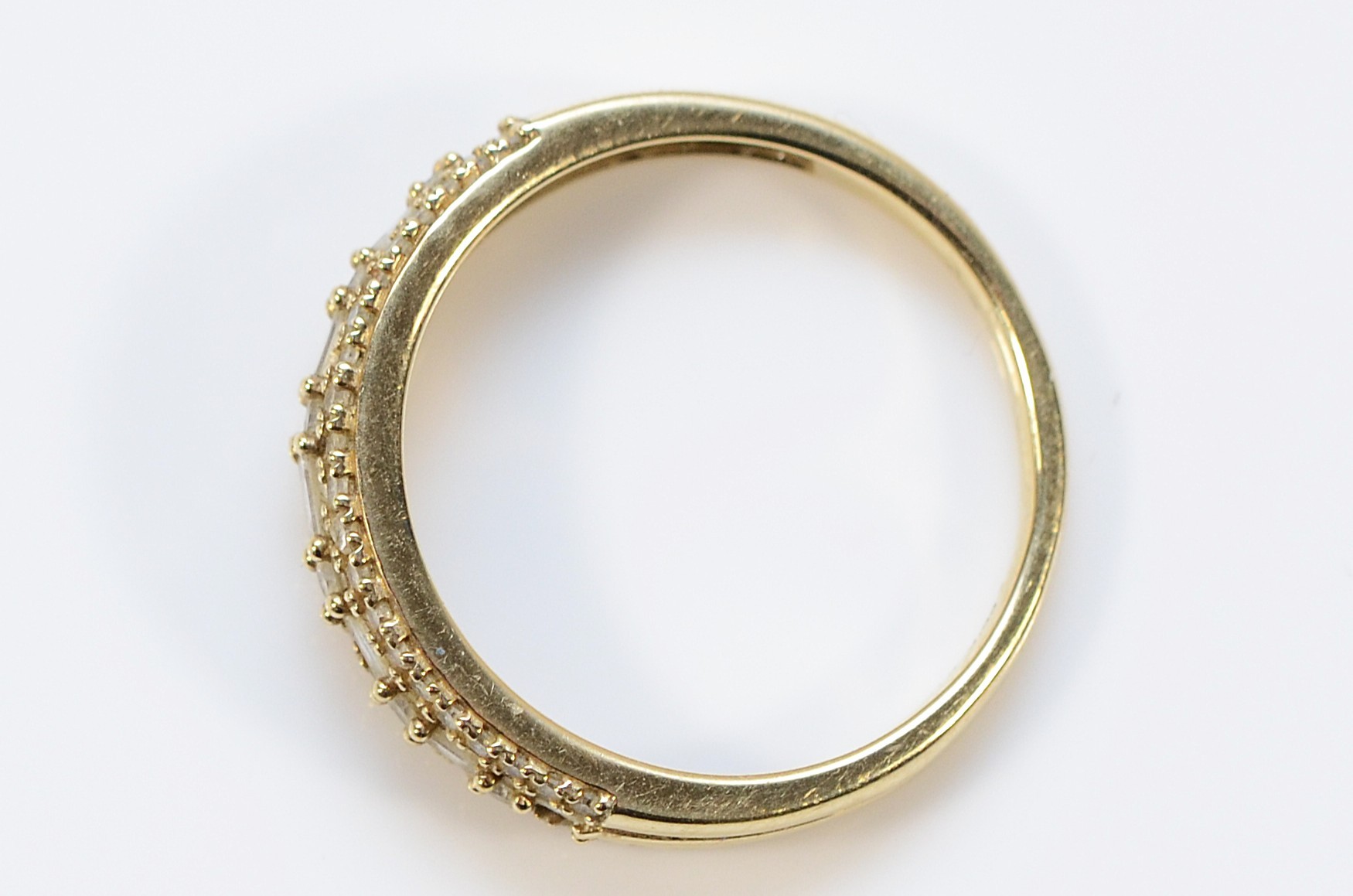 A 9ct gold vari cut diamond three row dress ring, stated 0.33ct, N, 2.1g