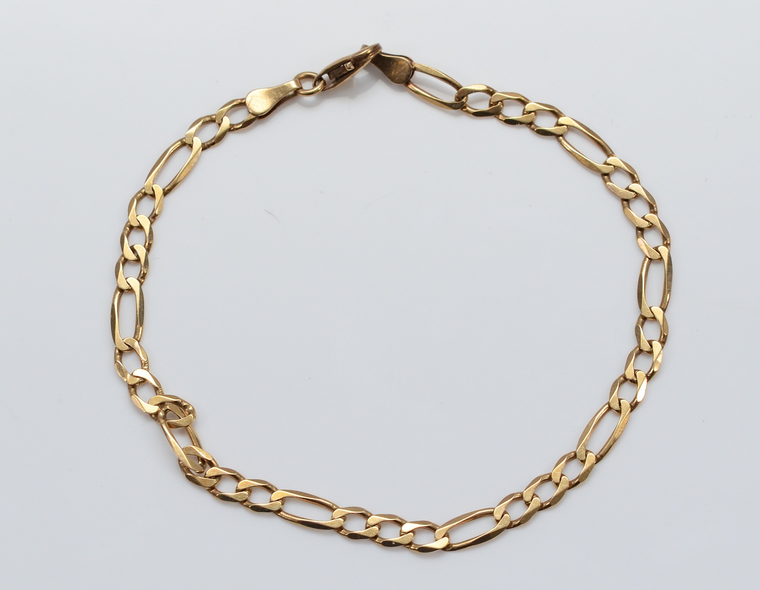 A 9ct gold Figaro link bracelet, 20cm, 3.1g