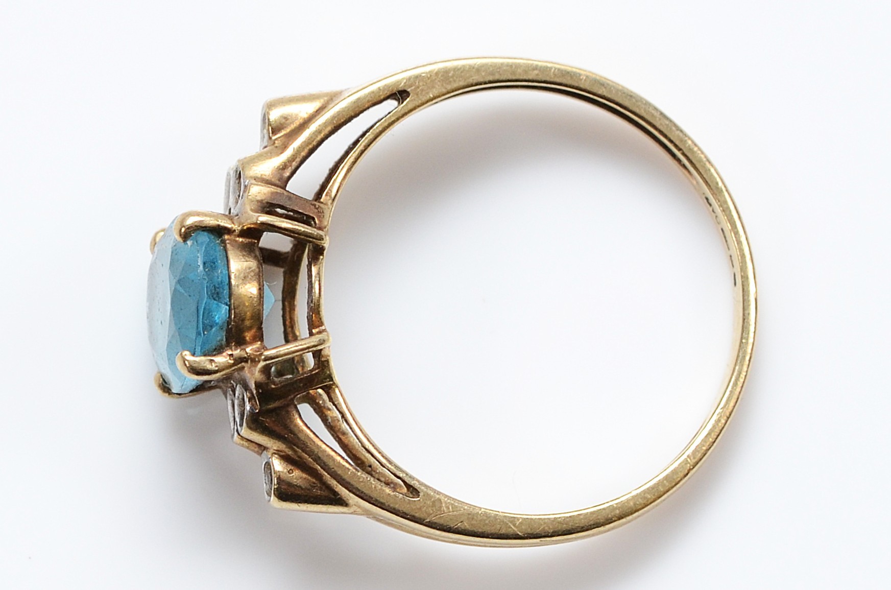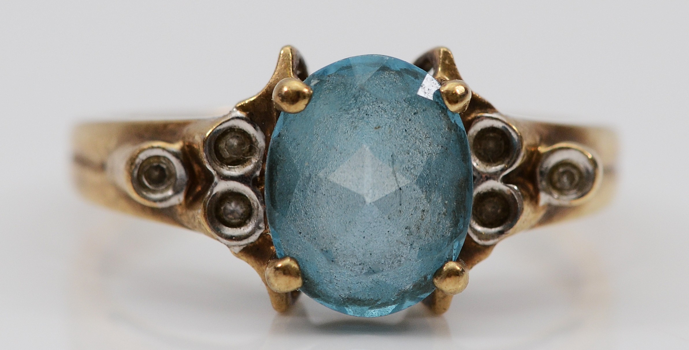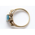 A QVC 9ct gold blue topaz and diamond dress ring, N, 2.6g