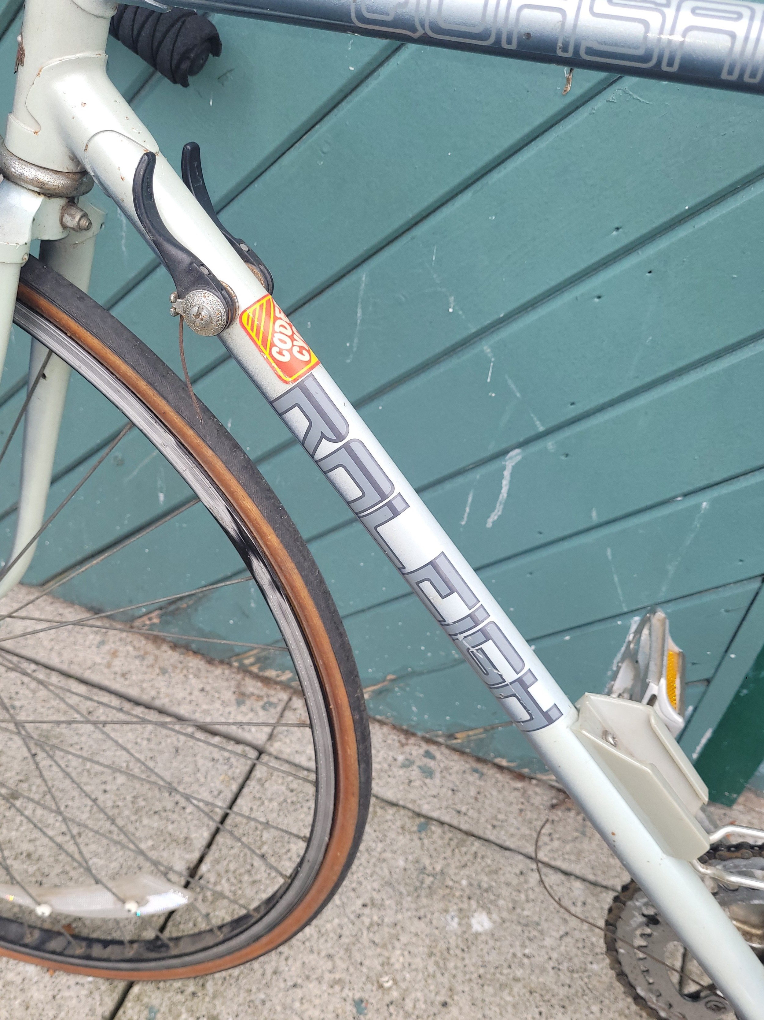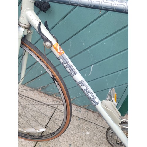 A Raleigh Quasar gents racing bicycle in silver with a Reyno...