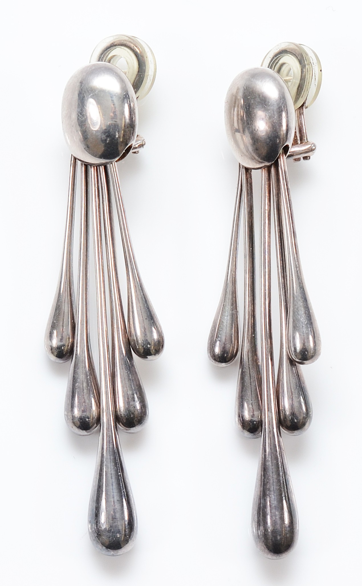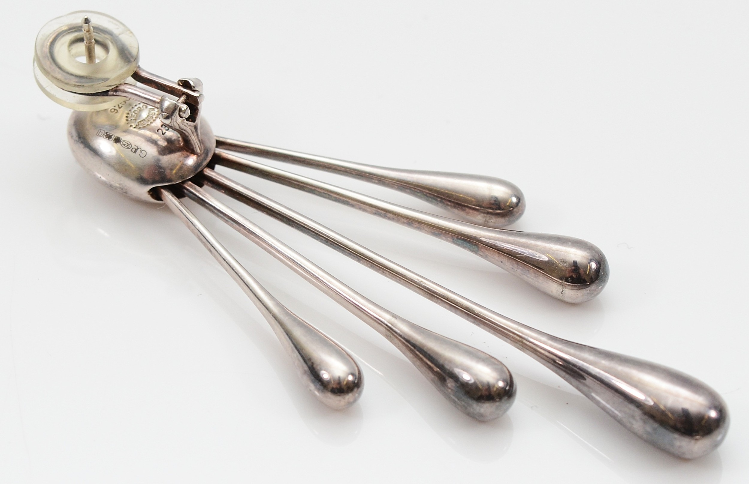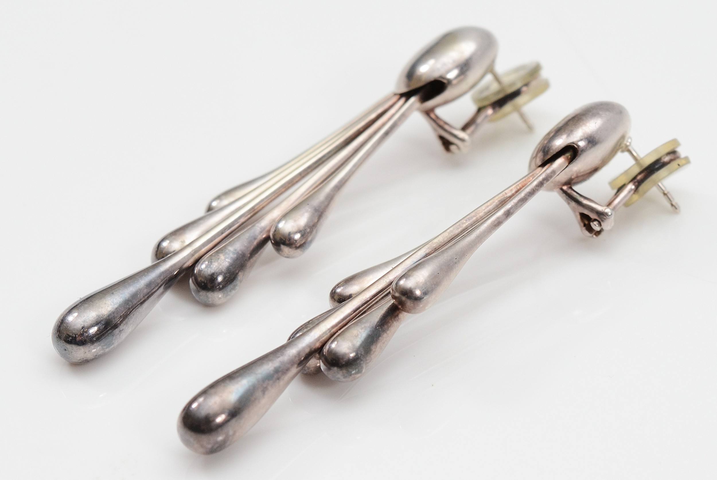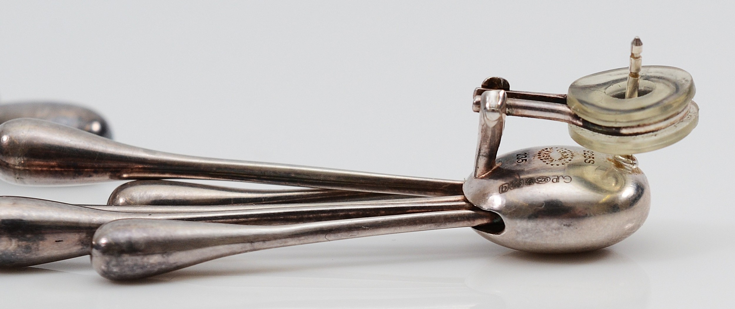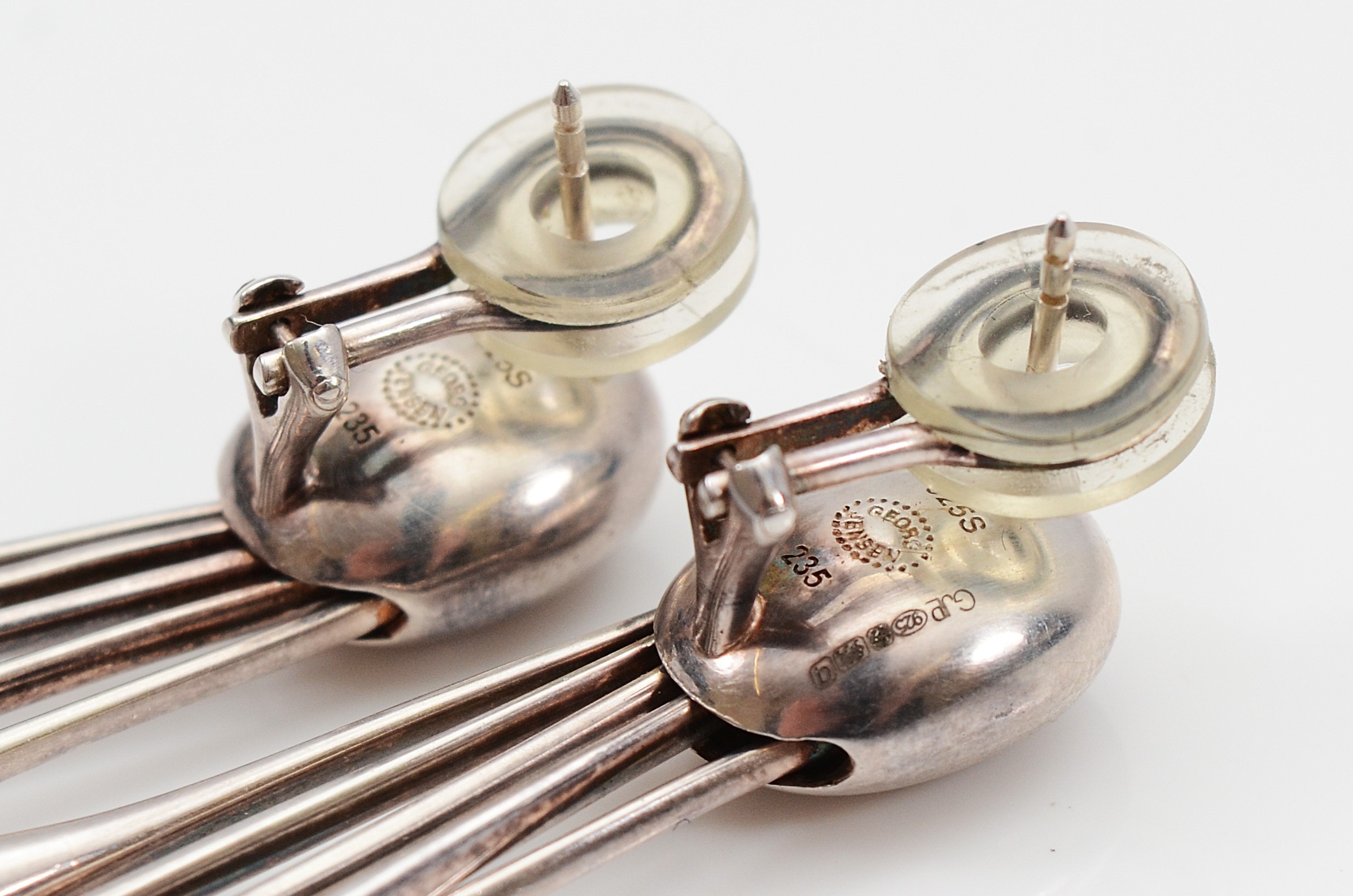 Georg Jensen, a pair of silver drop earrings design number 235 by Astrid Fog, Sheffield 2015, 65mm, 22g