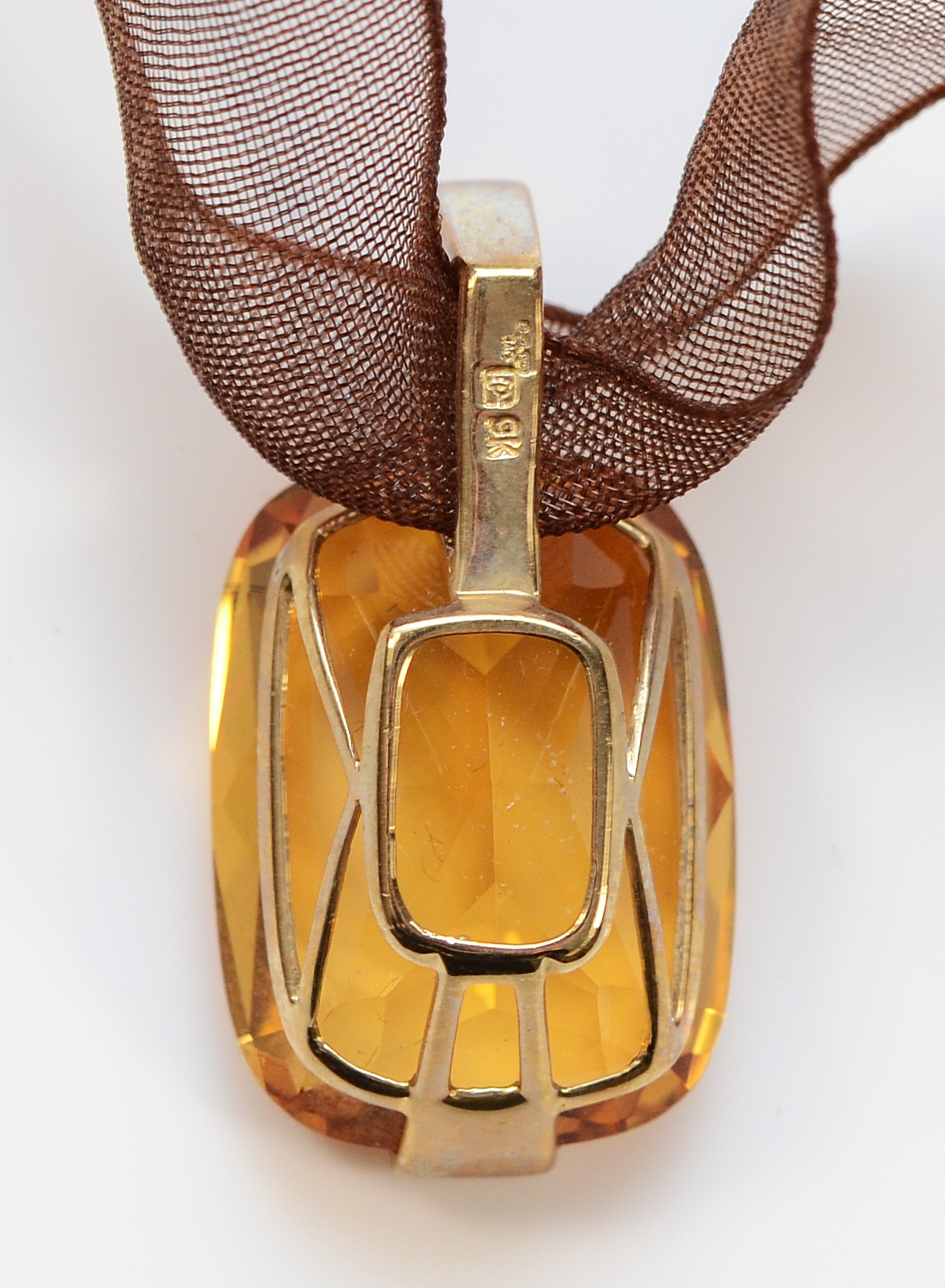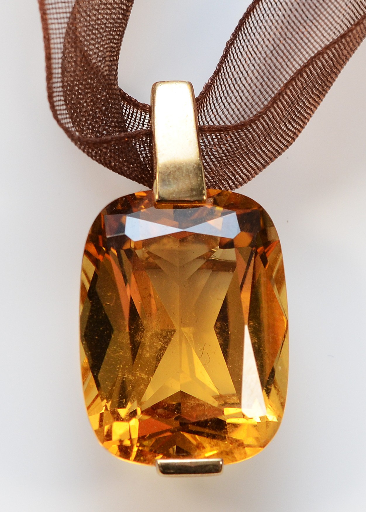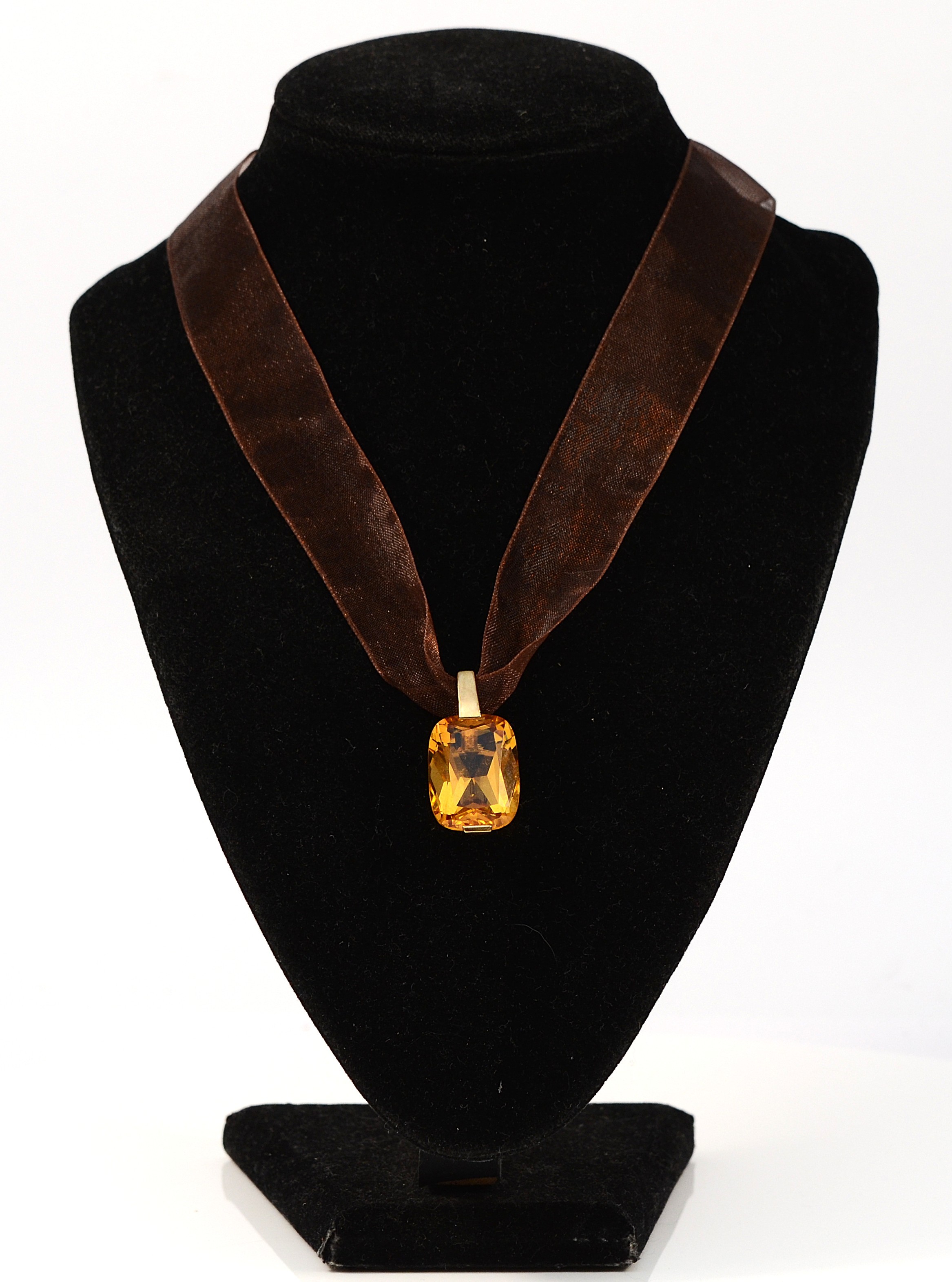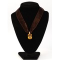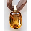 A 9ct gold mounted orange gemstone on a ribbon necklace with a gold clasp, 4.9g
