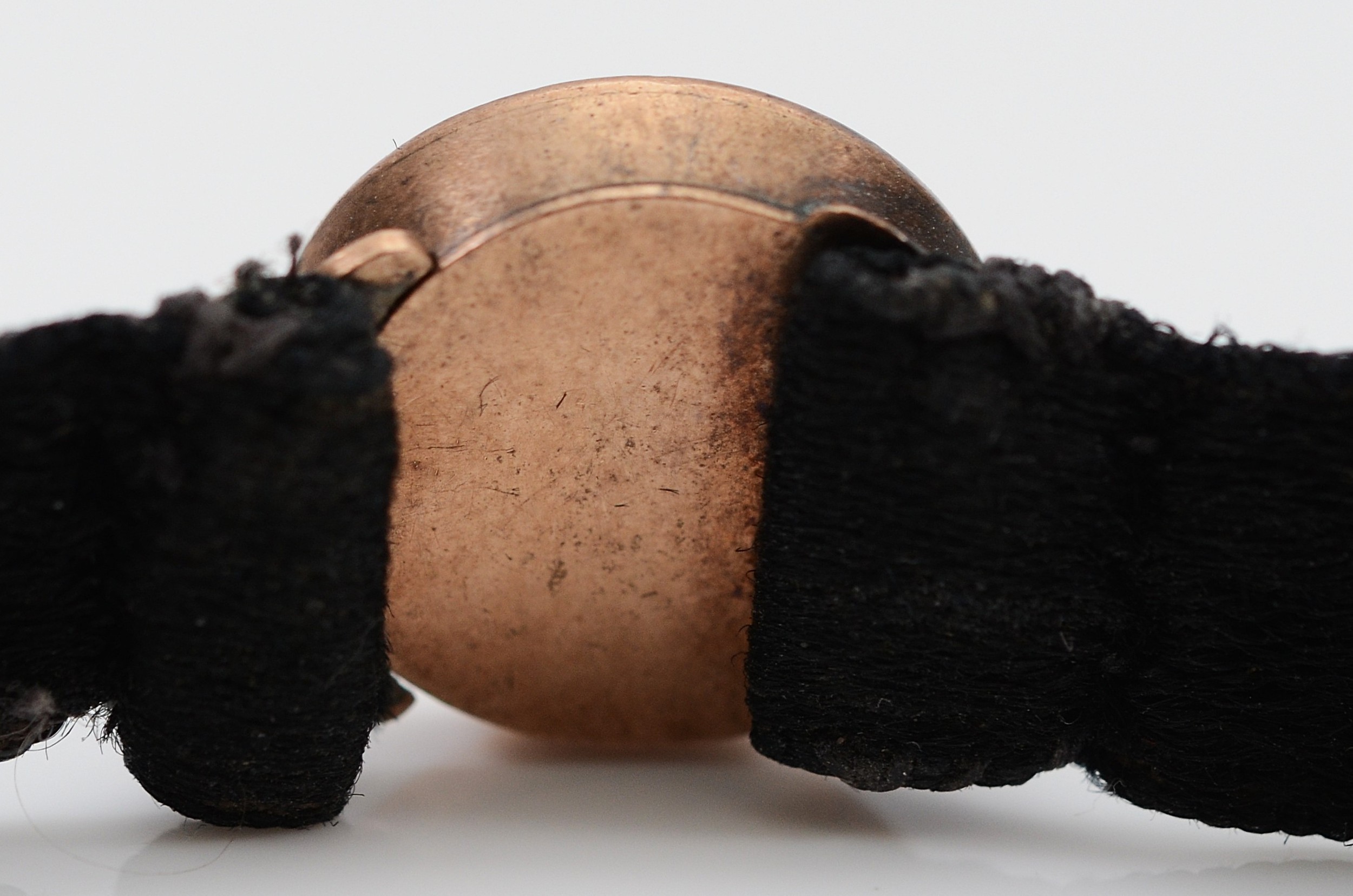 An unmarked 9ct rose gold hair work clasped velvet necklace, 2.5g