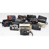 A collection of twelve 35mm cameras, to include a Canon Sure Shot AF7, Le Clic LC25 BV Automatic, Olympus Trip S, Konica Z-up 140 Super, Halina Vision C xms, Riva AF35c, Canon Sure Shot 105 Zoom, Olympus Trip AF 31, Olympus Super Zoom 140 S, Minolta 125 Riva Zoom, Kodak VR35 and an Olympus IS-1000 with case.