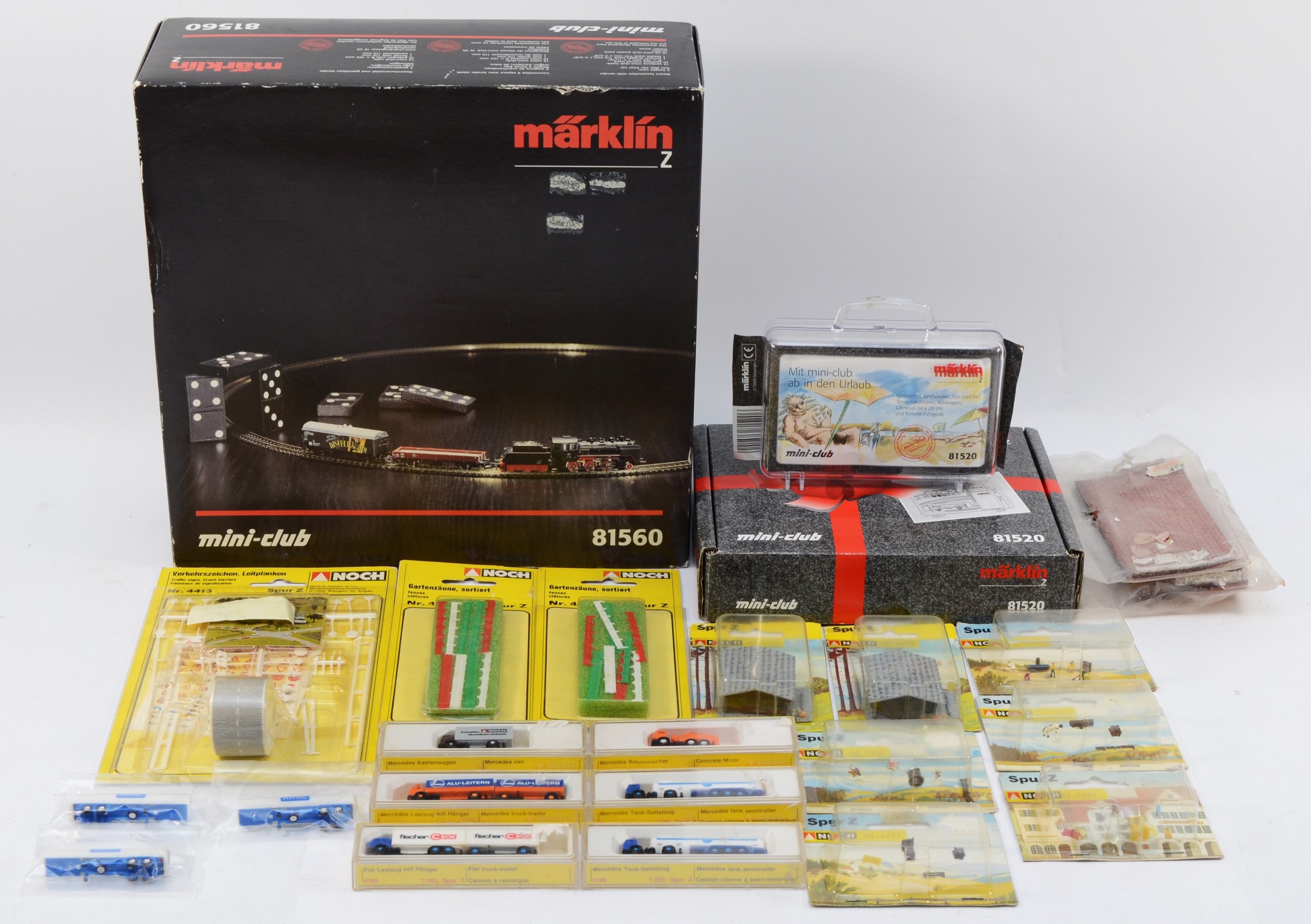 A Marklin Mini Club Z gauge 81520 train set, appears complete; Incomplete 81560 Z gauge train set, and a small collection of Noch Z gauge model railway carriages.
