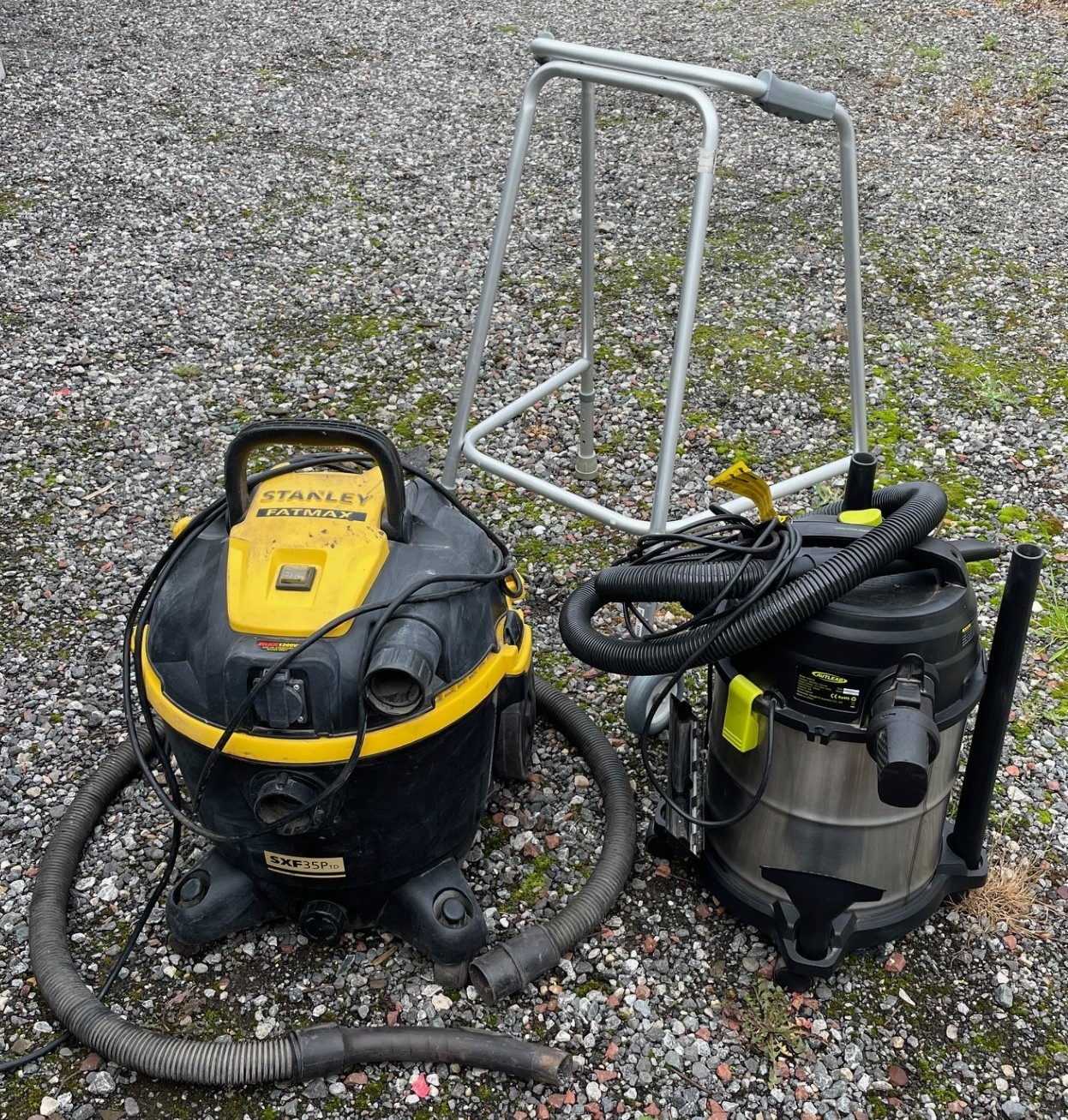 Two industrial vacuum cleaners, to include a Stanley 'Fatmax' model SXF 35P, and a Autlead wet & dry vacuum cleaner, model WD02A, together with a walking aid. (3)