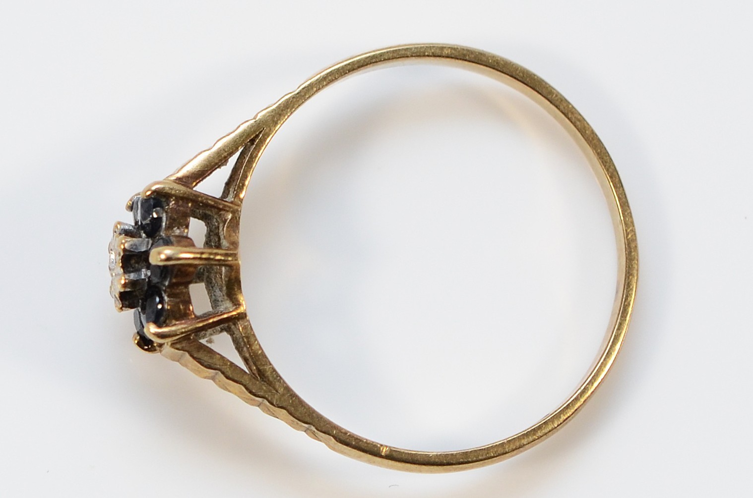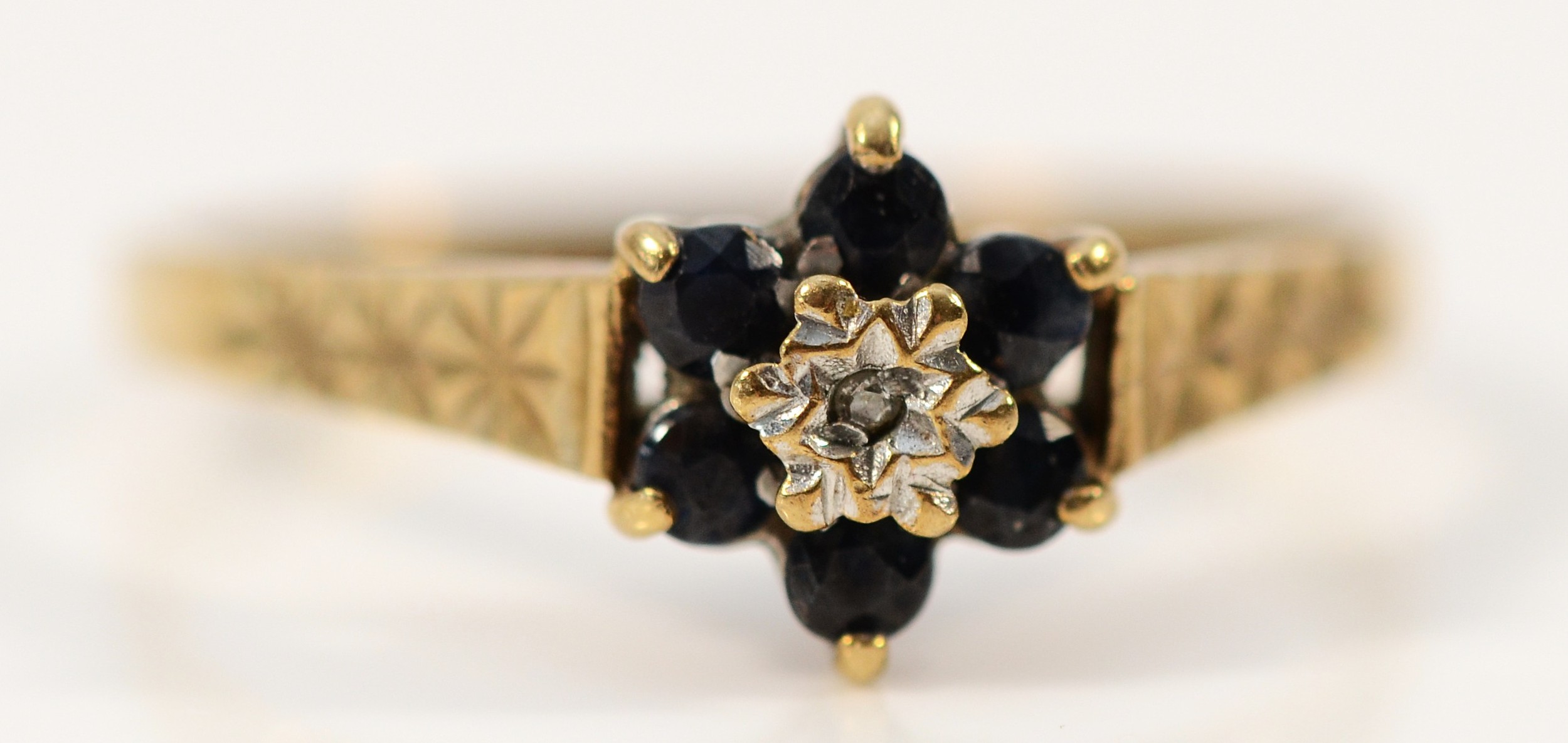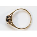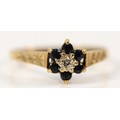 A 9ct gold sapphire and diamond floral cluster ring, P, 1.7g