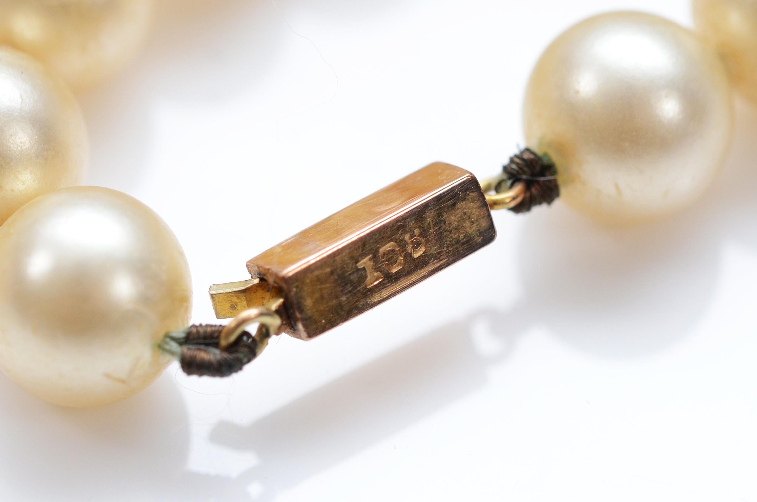 Ciro, a 9ct rose gold clasped pearl necklace, 47cm, with box