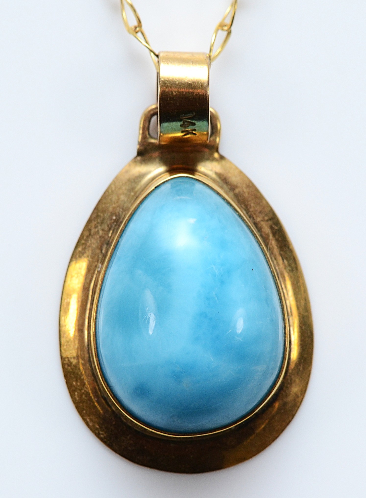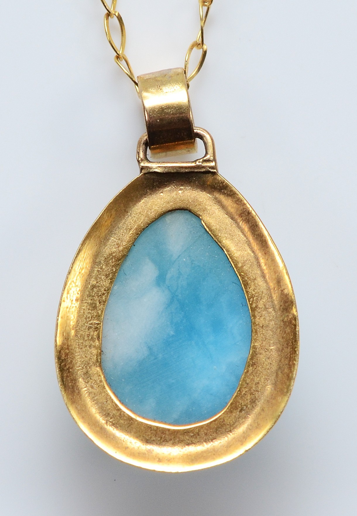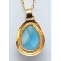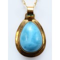 A 14K gold larimar pendant on a chain, 20mm, 3.7g