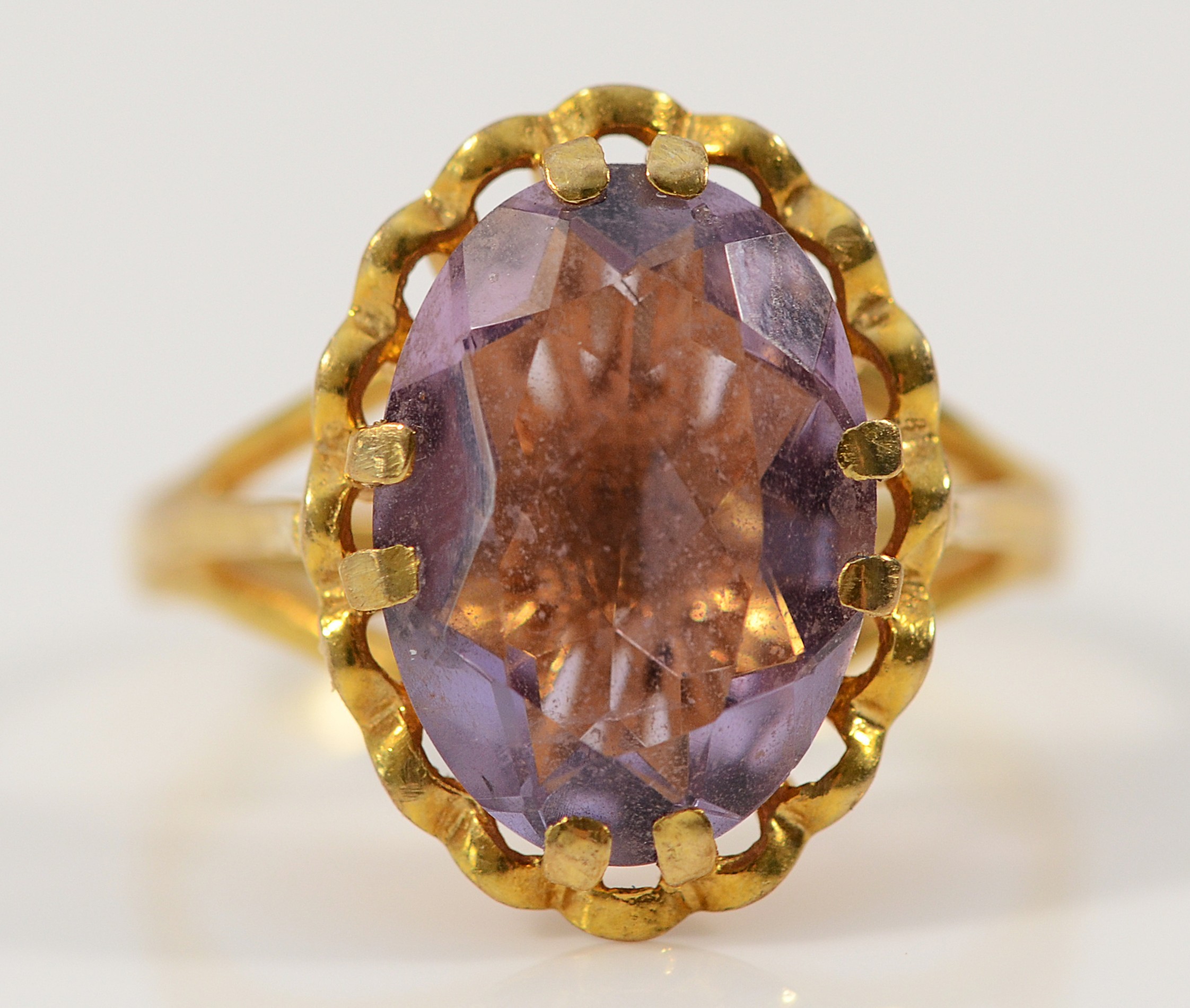 A 9ct gold amethyst dress ring, 13mm x 10mm amethyst, O 1/2, 4g