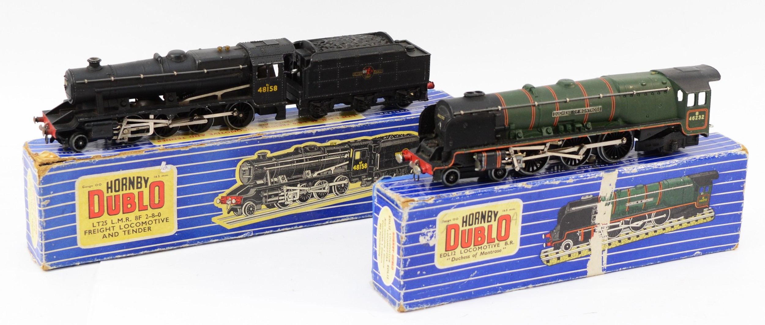 Hornby 00 Gauge Railways; Dublo LT25 L.M.R freight locomotive & tender, No.31025, boxed, together with a EDL12 locomotive B.R 'Duchess Of Montrose', No.31012, boxed. (2)