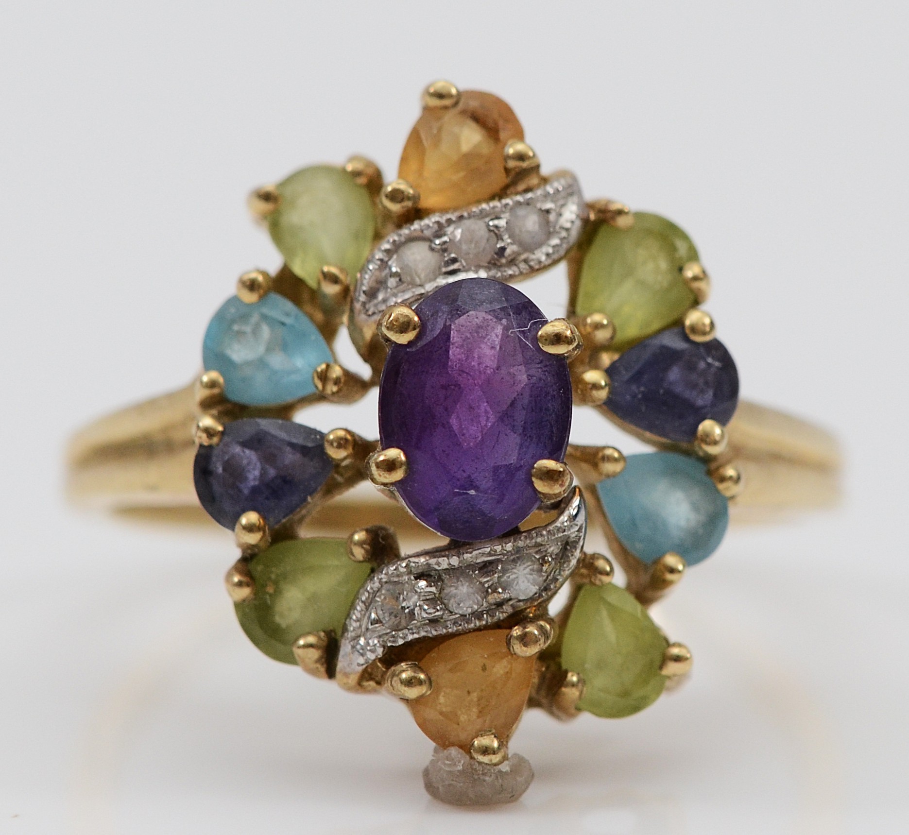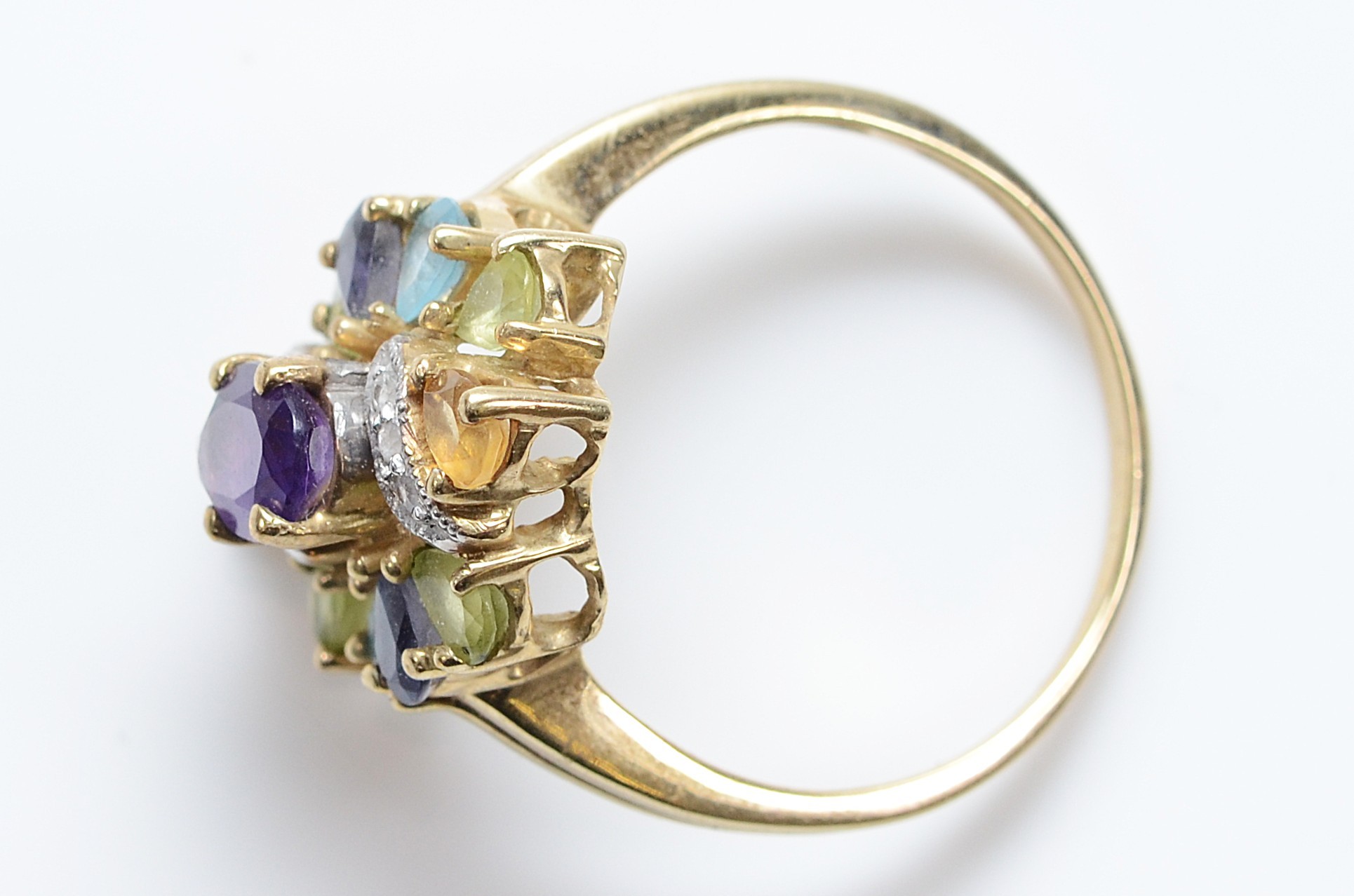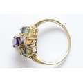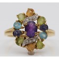A 9ct gold multi gemstone cocktail ring, S, 4.4g