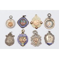 Nine various silver watch fobs and medals, various dates, 78...