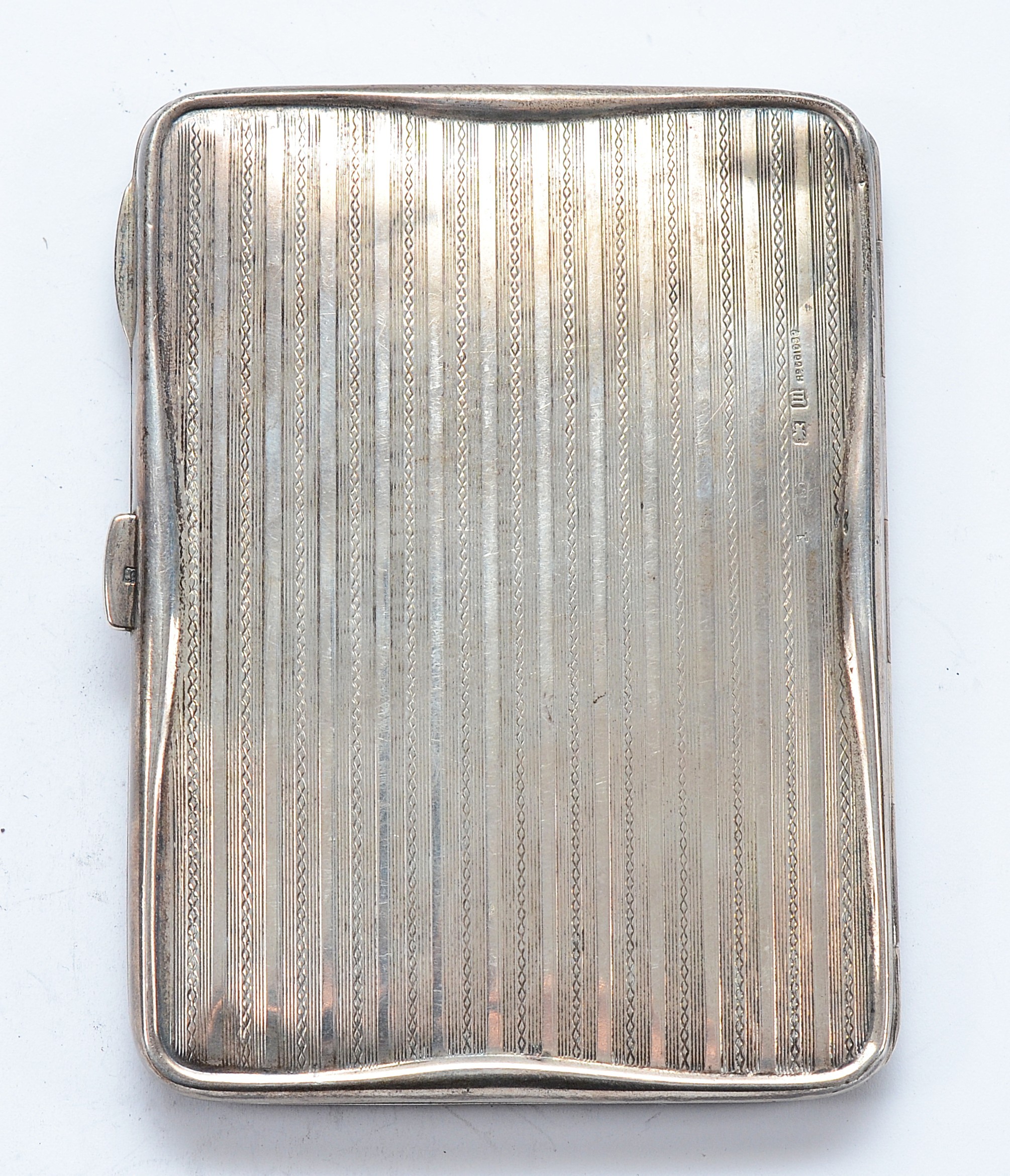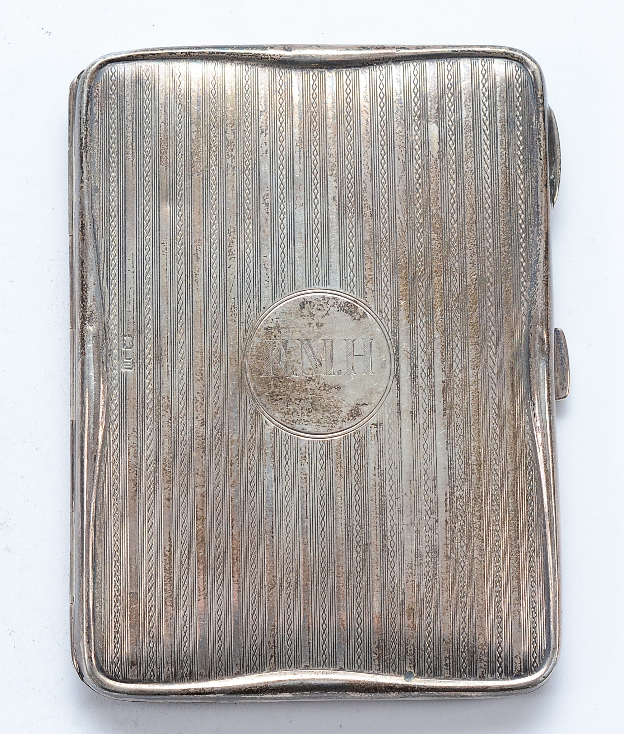 A silver card case, Birmingham 1911, with fitted interior and initials engraves to the front, 11x8cm, 98gm.