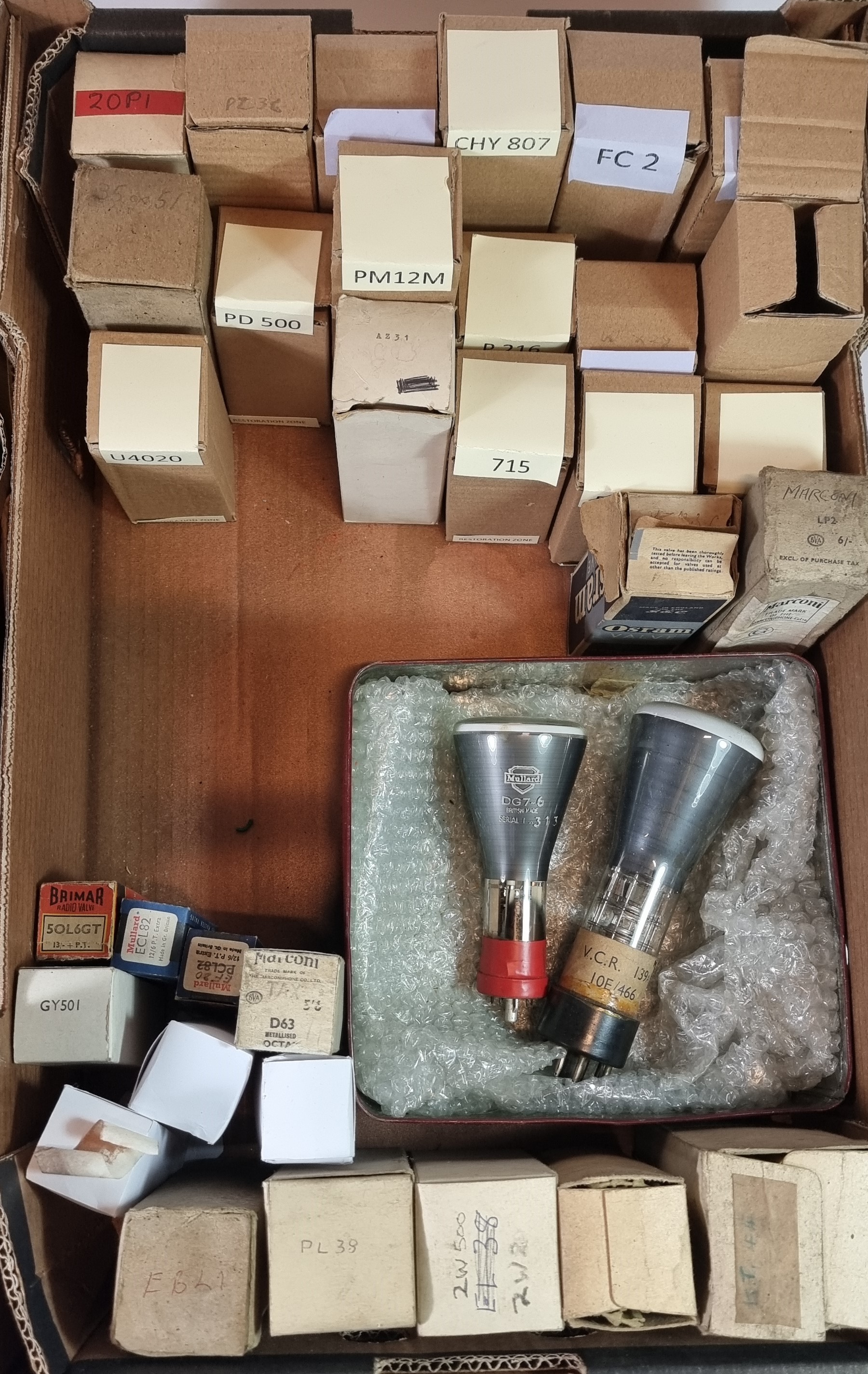 A substantial collection of valves, to include makes such as Zaerix, Pinnacle, Mullard, & Brimar mostly boxed (2)