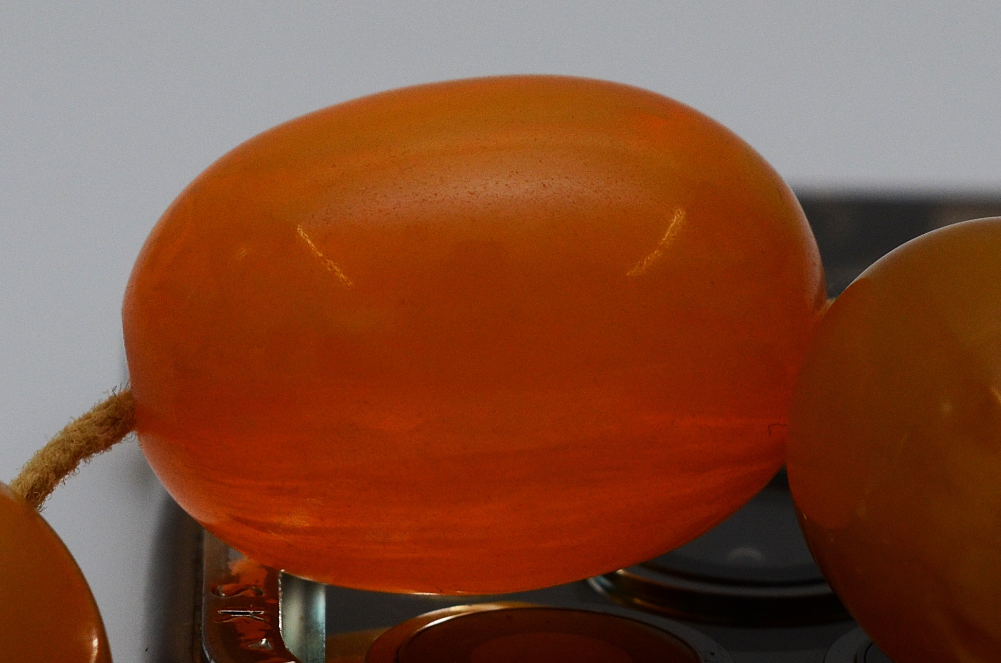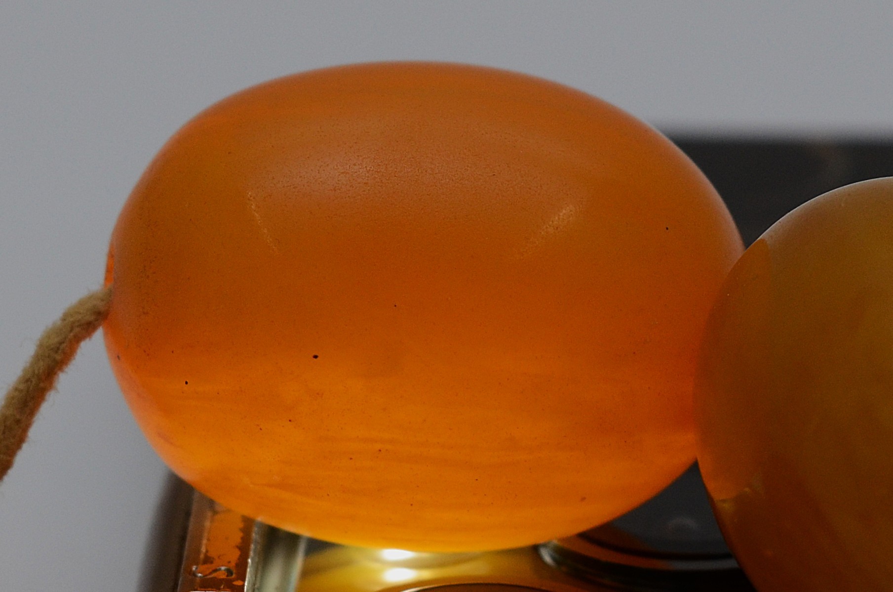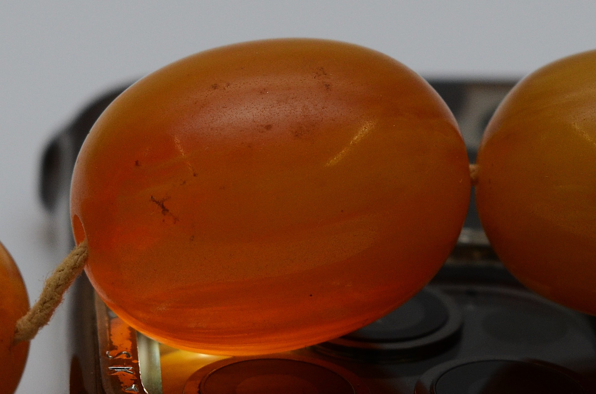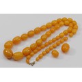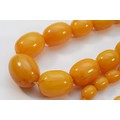 A Bakelite beaded necklace. graduating bead size, largest 25mm, 78cm with two spare beads, 113g