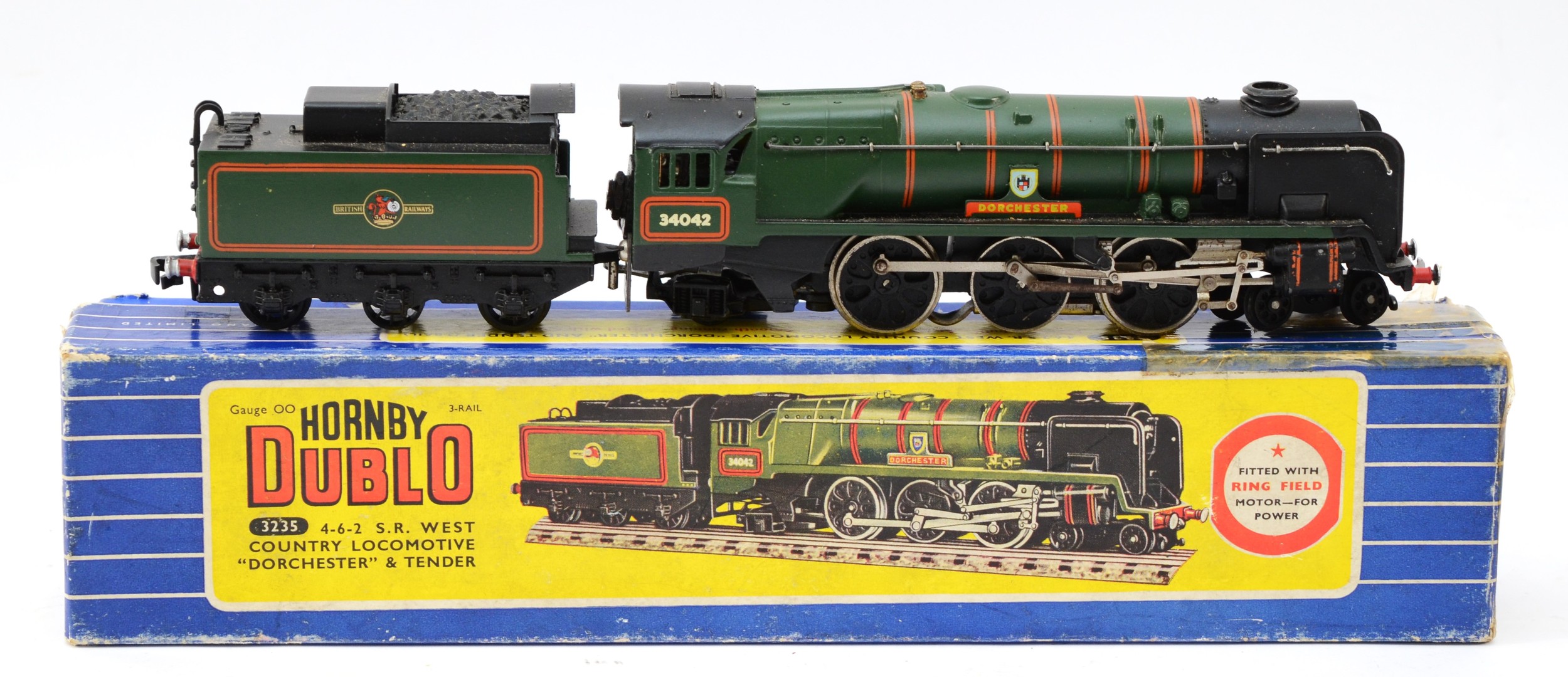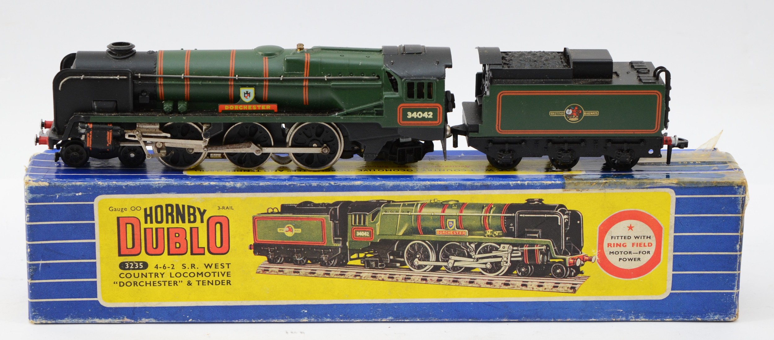 Hornby 00 gauge Railways; Dublo 4-6-2 S.R West Country locomotive & tender 'Dorchester' No.3235, boxed.