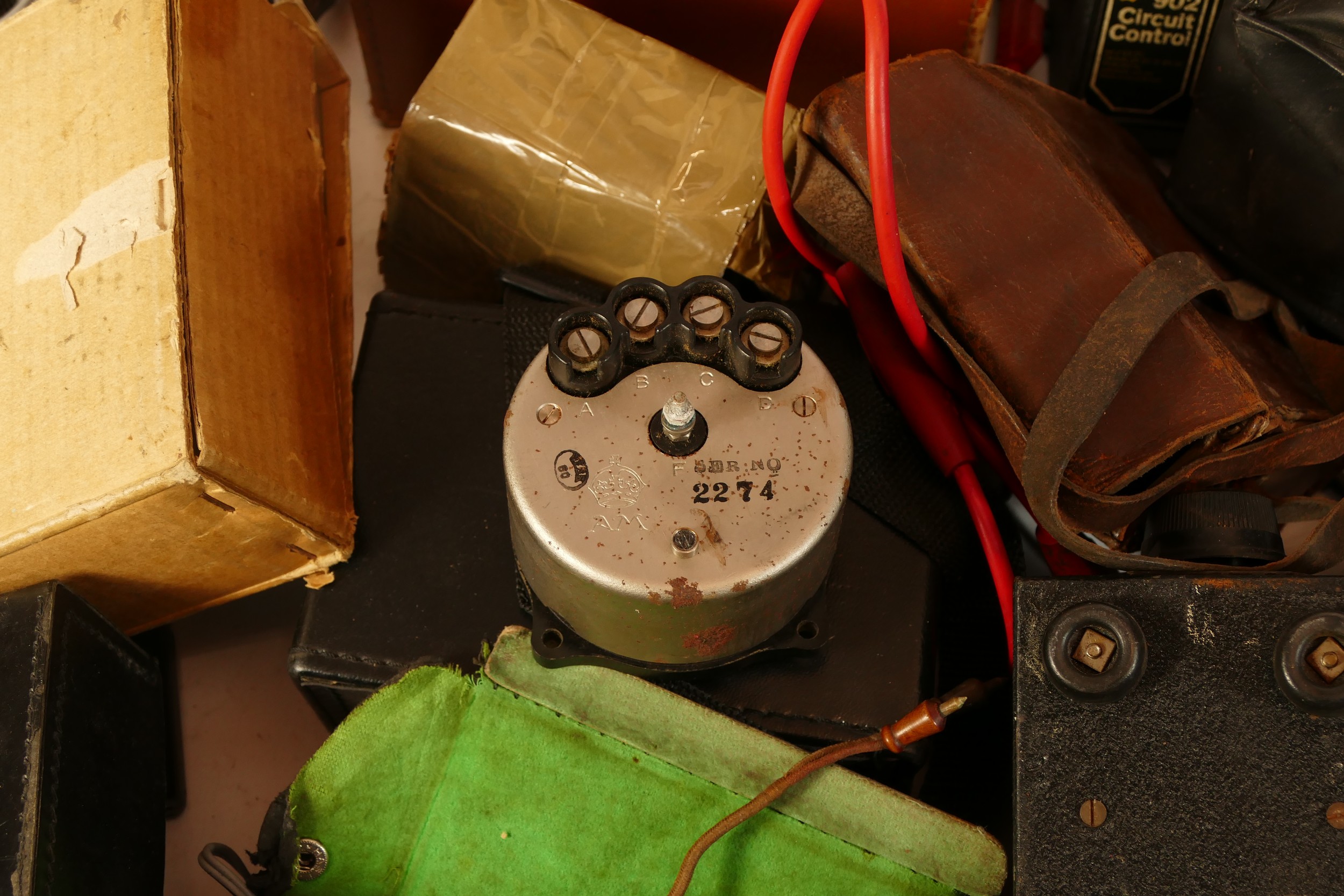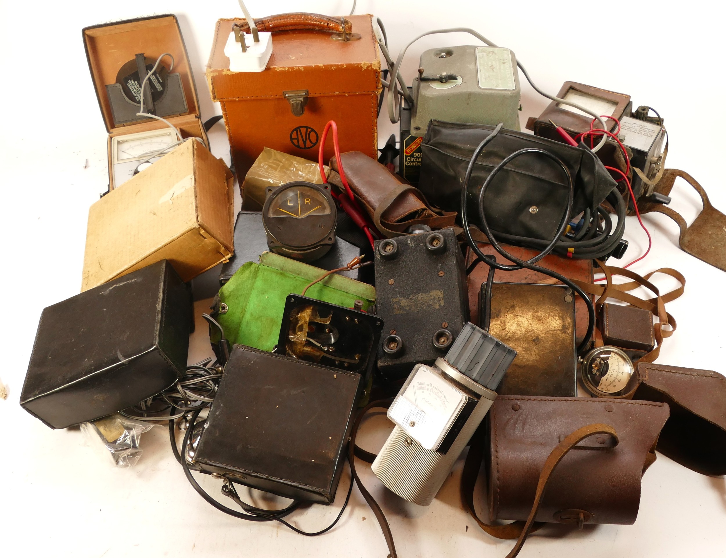 A collection of mid twentieth century voltage meters to include an Eagle EP-30KN multi meter and an Aviometer 8, also a Skymaster Ghost pigeon timing clock.