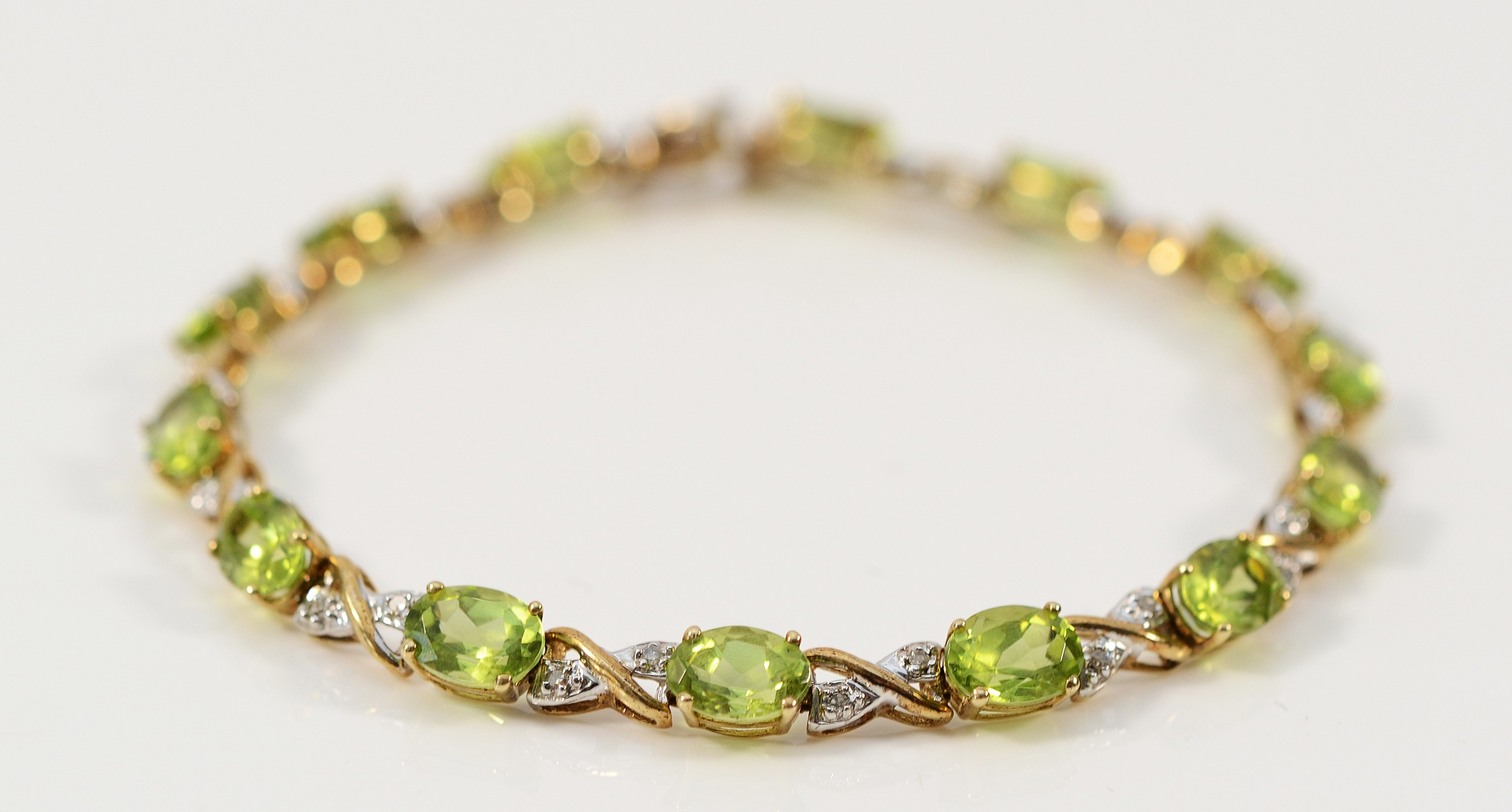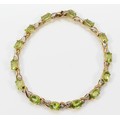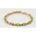 A 9ct gold peridot and diamond bracelet, 19cm, 8.2g