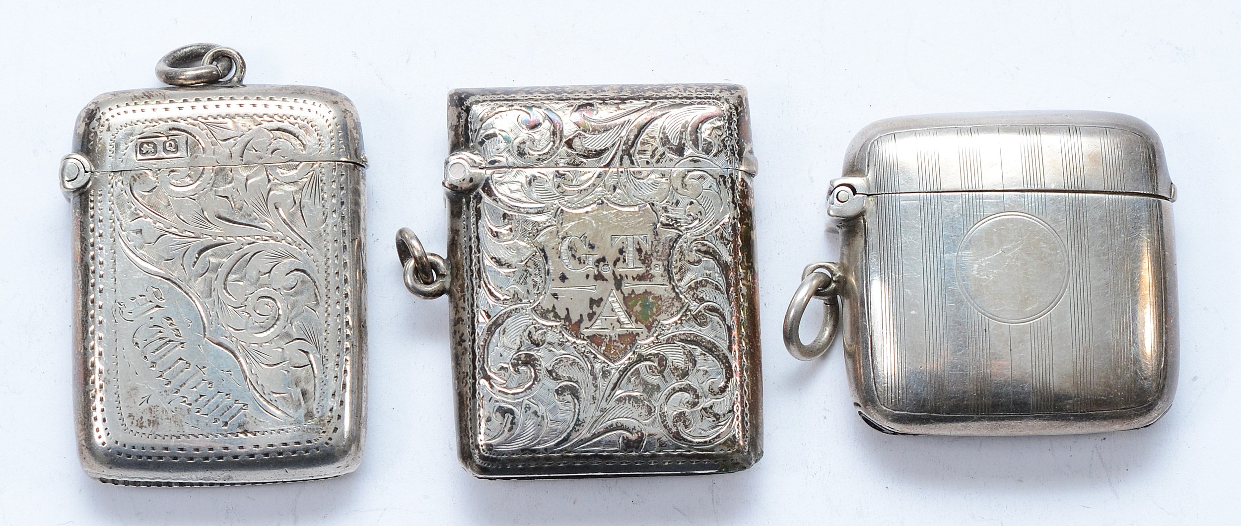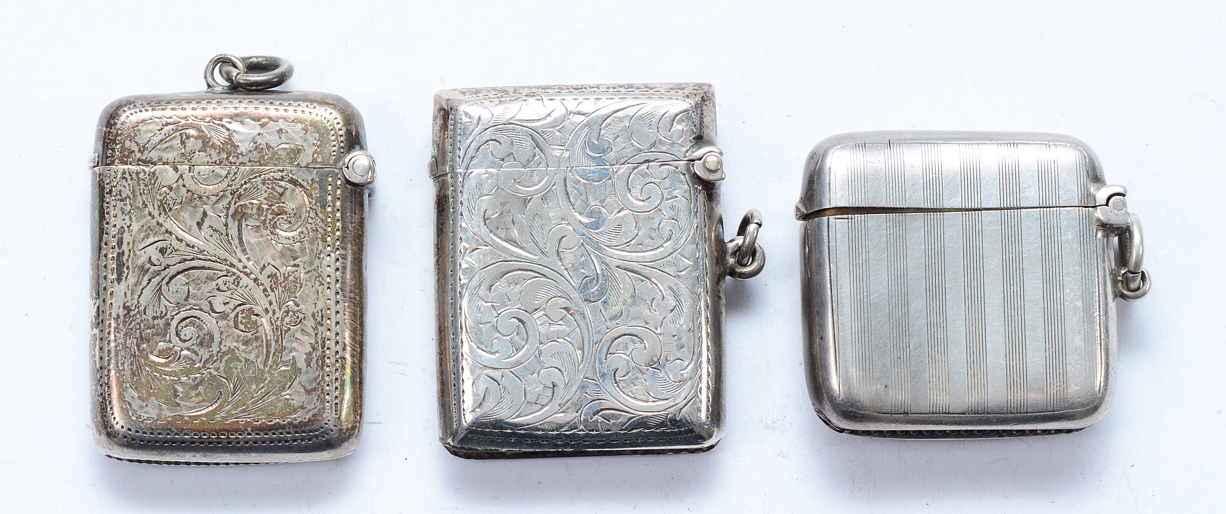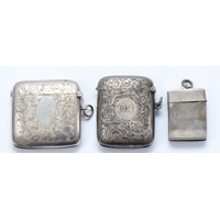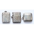 Three silver vesta cases, Chester 1899, 1911, Birmingham 1904, 72gm.