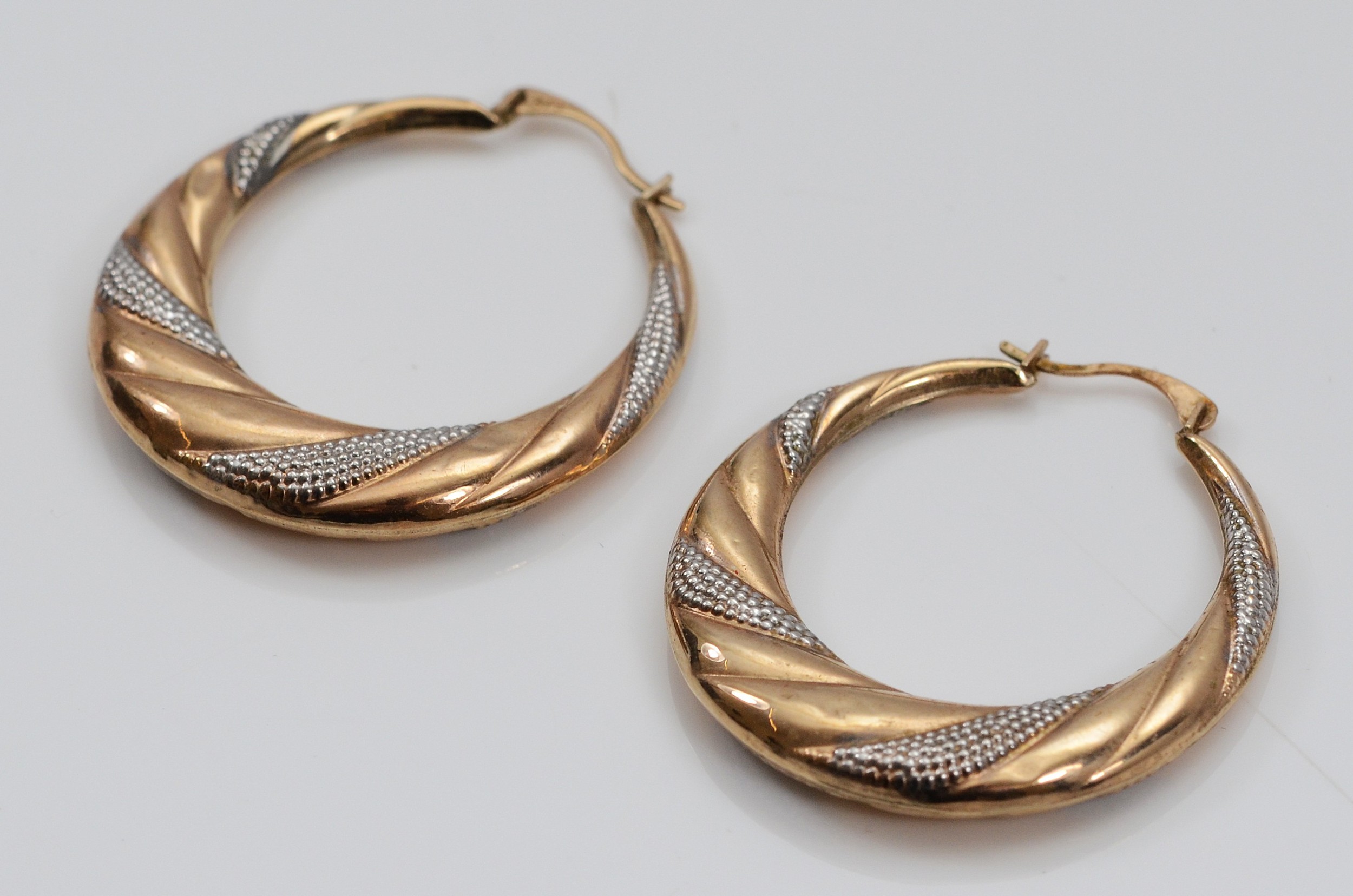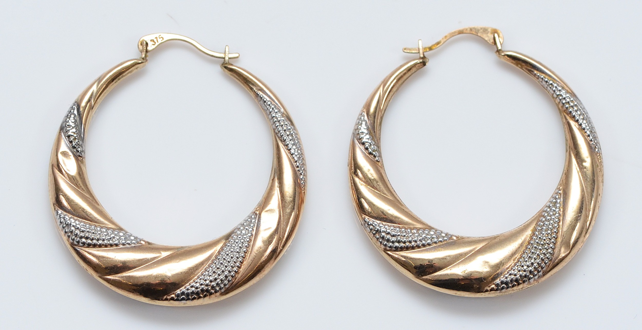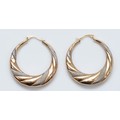 A pair of 375 gold patterned hoop earrings, 30mm, 1.8g