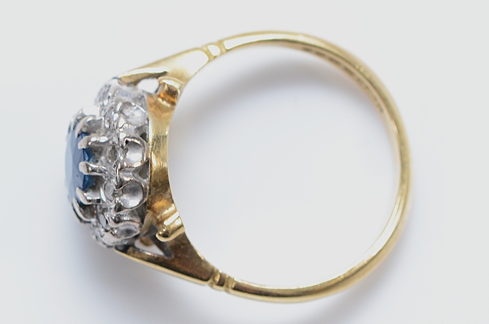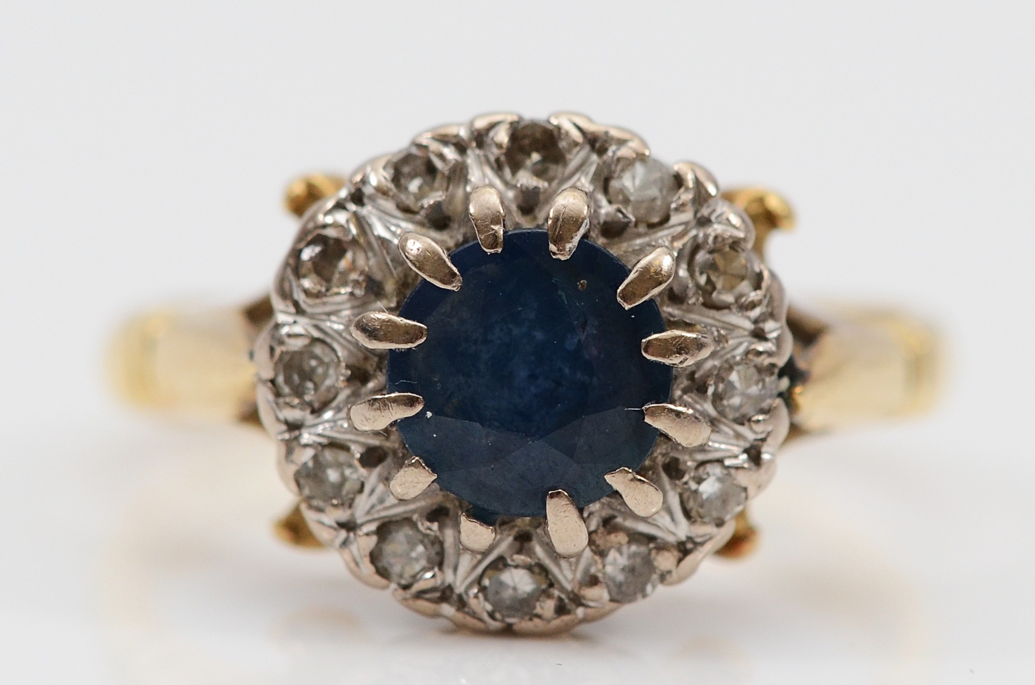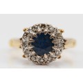 An 18ct gold sapphire and diamond cluster ring, K, 4.5g