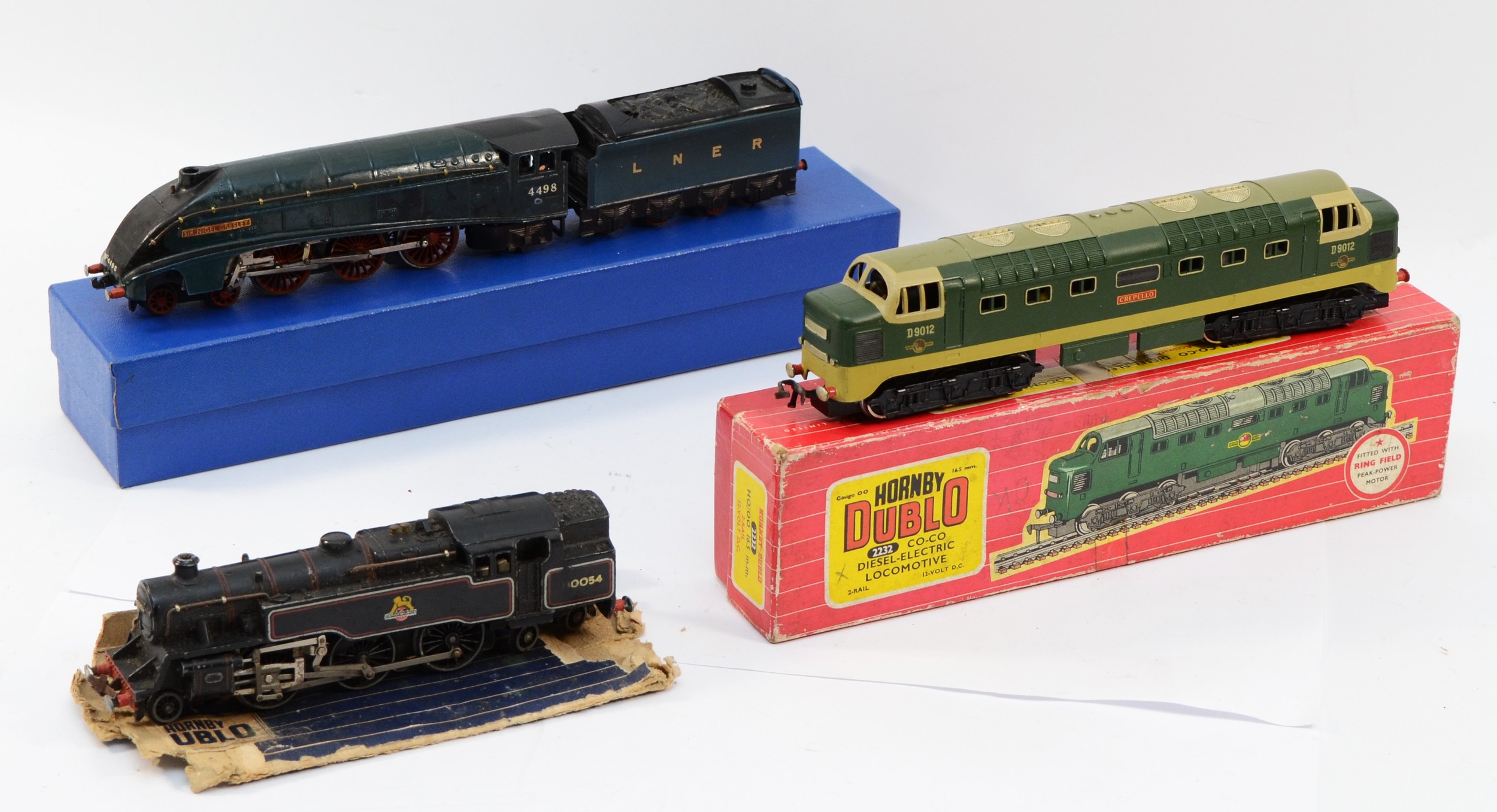Hornby Dublo 00 gauge; Co-Co diesel class D9012 locomotive, boxed, together with LNER locomotive 'Sir Nigel Gresley' and a class 80054 locomotive. (3)