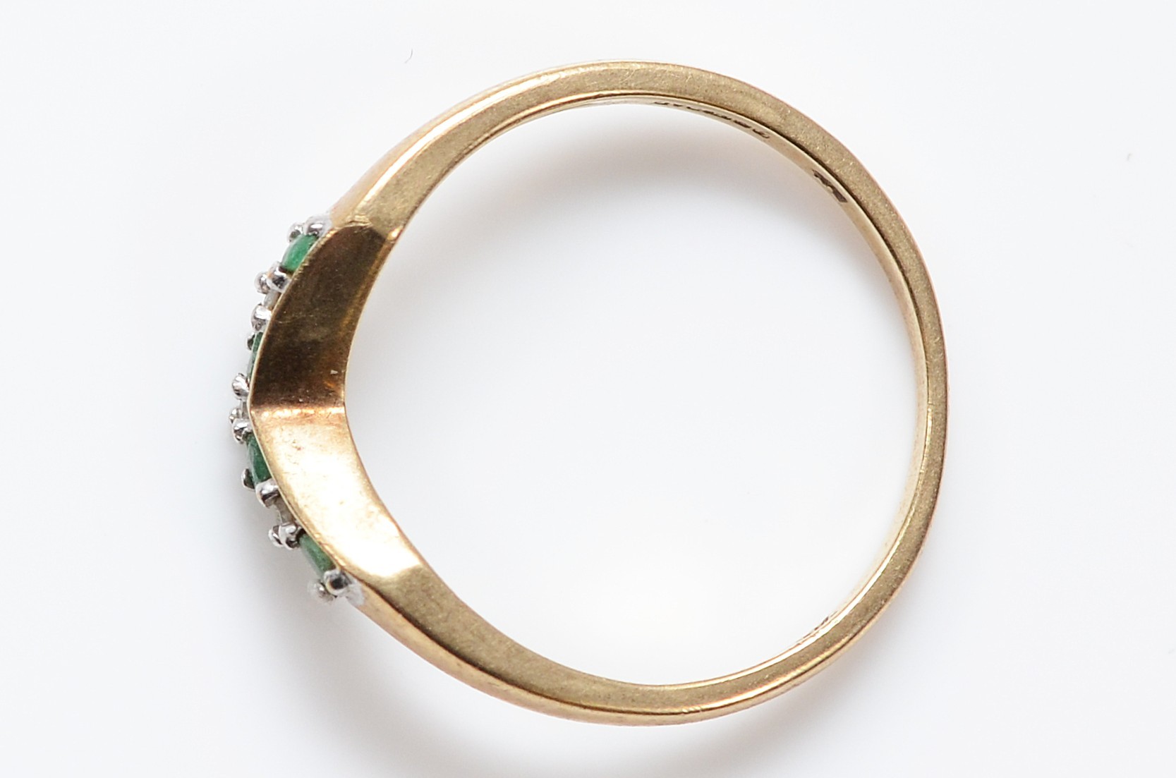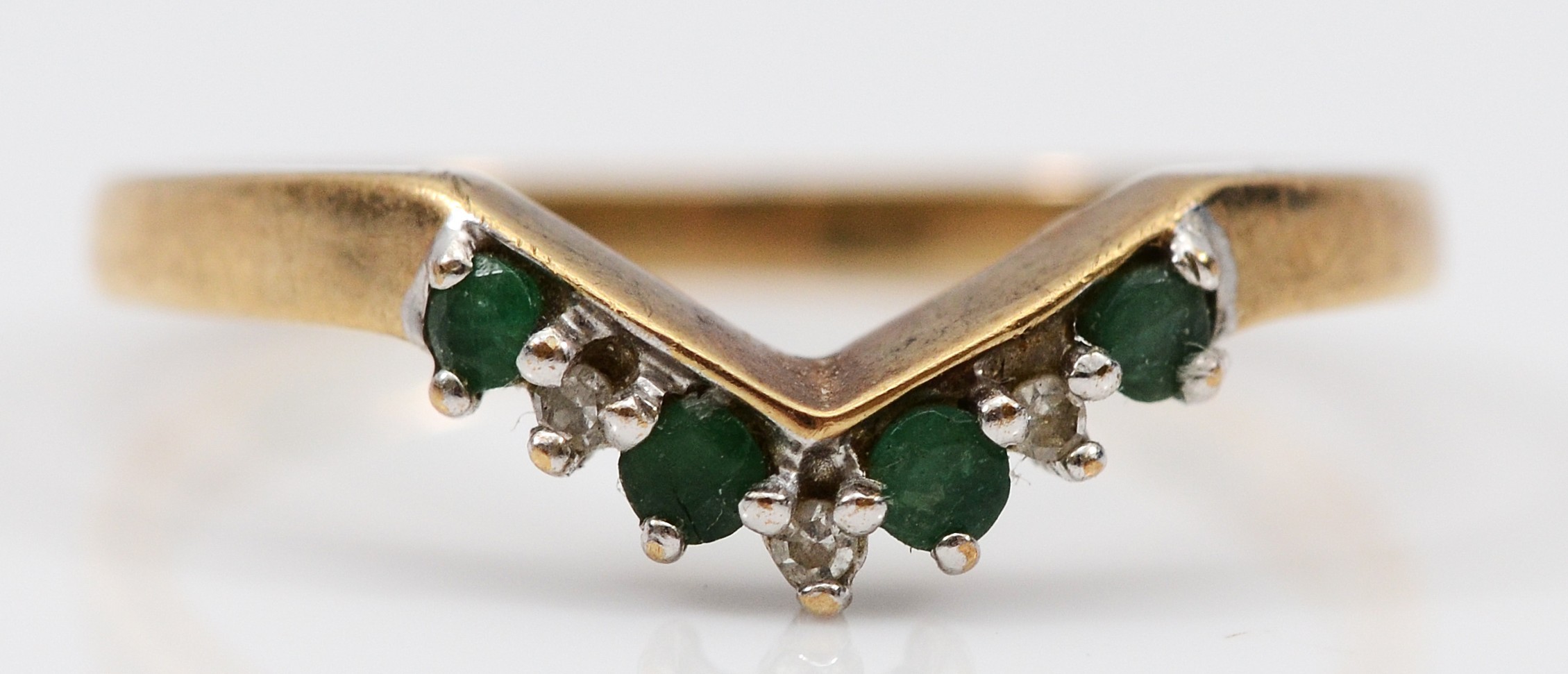A QVC 9ct gold emerald and diamond wishbone ring, N 1/2, 1.6g
