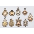 Nine various silver watch fobs and medals, various dates, 76...