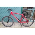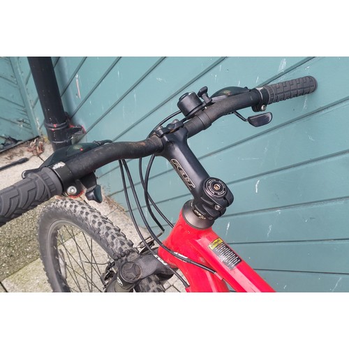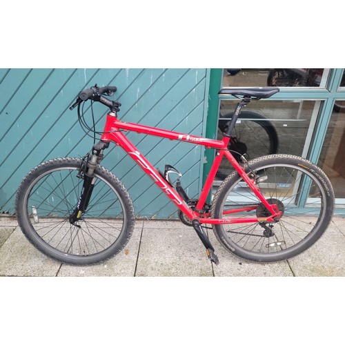 A Felt Q500 gents hybrid bicycle in red with a Shimano eight...