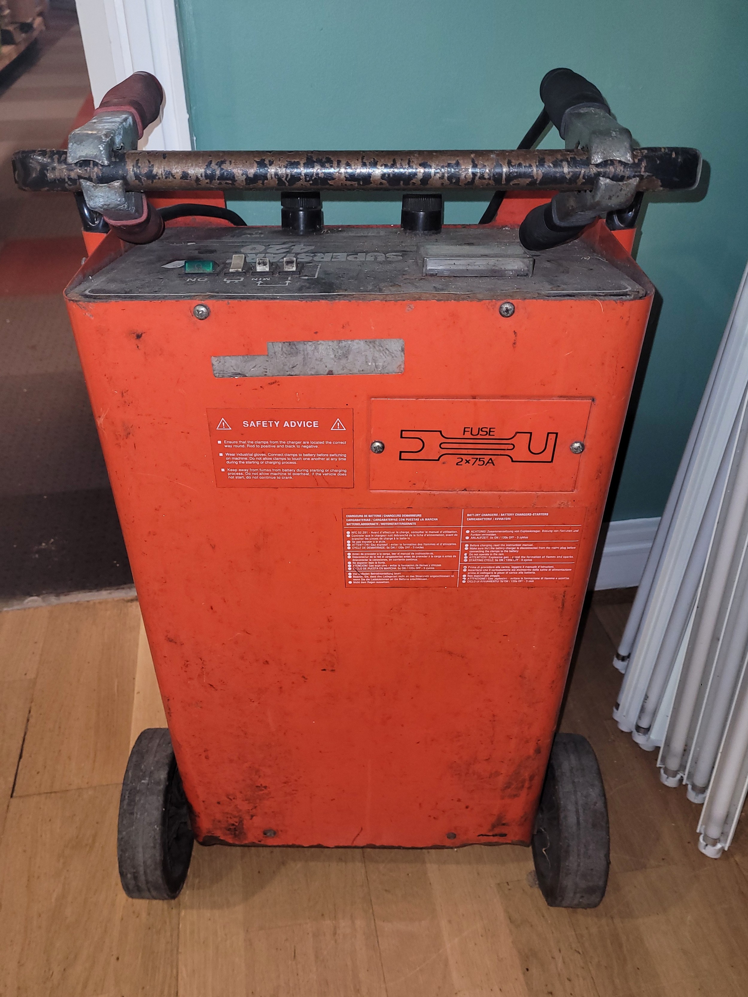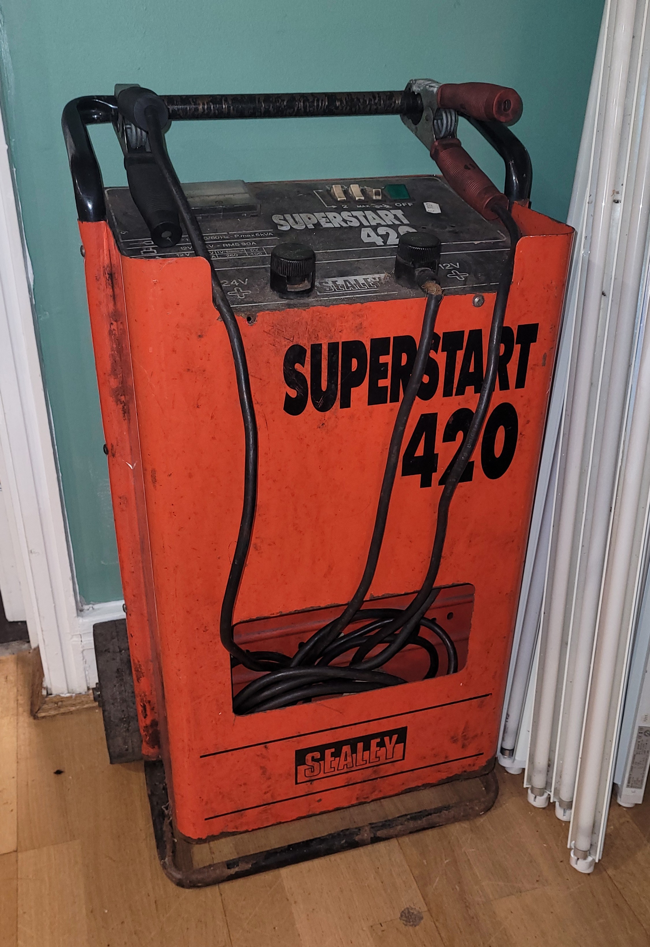 A Sealey Superstart 420 12-24v battery charger/booster.