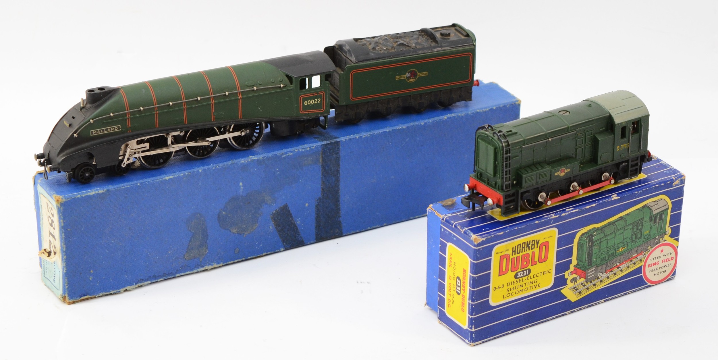 Hornby 00 gauge Railways; Dublo 0-6-0 diesel - electric shunting locomotive 3231, boxed, together with a B.R 'Mallard' locomotive & tender, No.3211, boxed. (2)