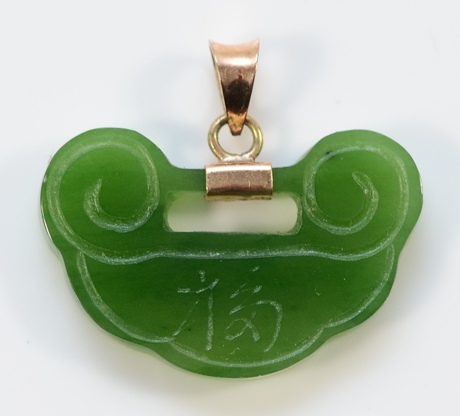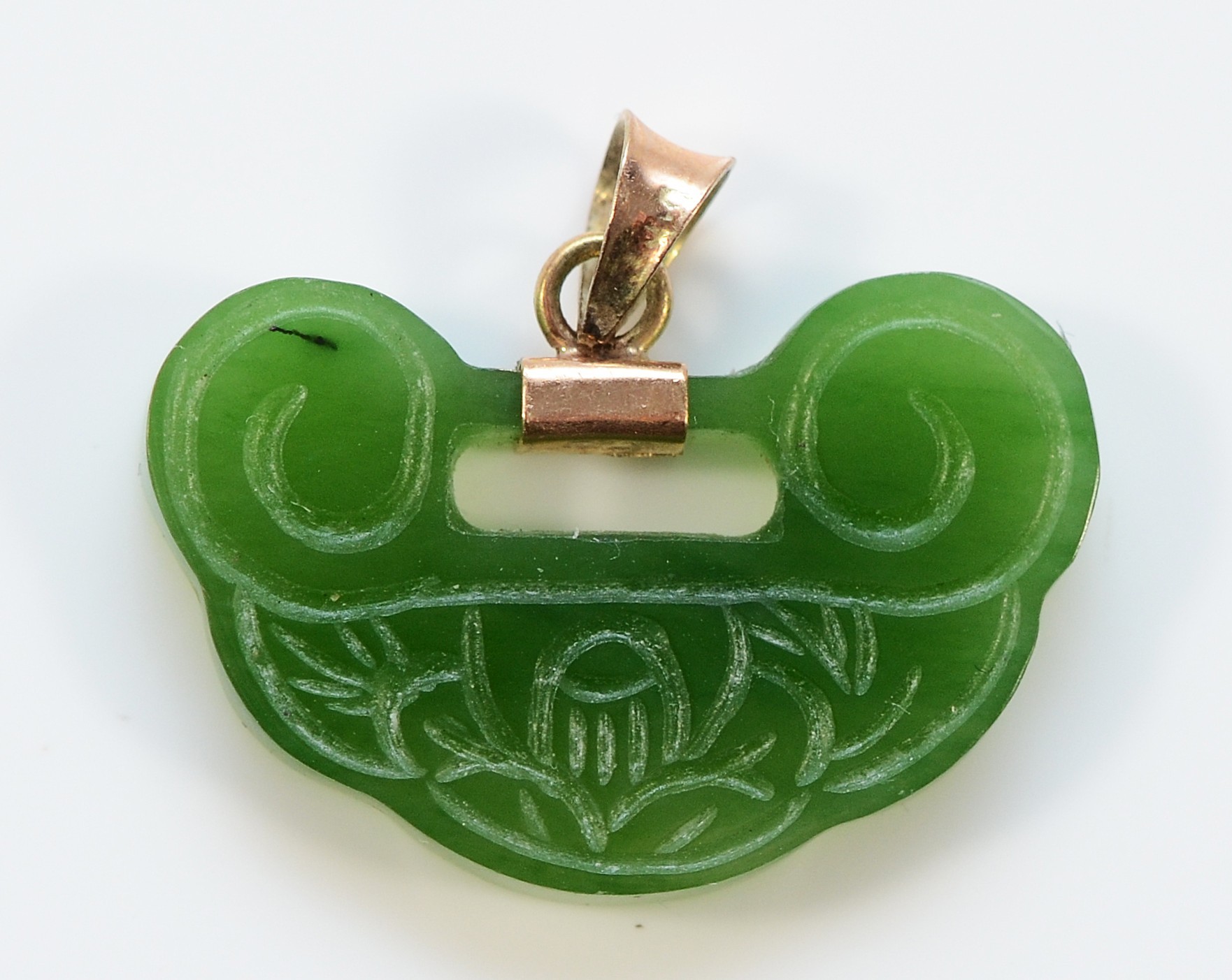 A 9ct gold carved jade pendant, 25mm, 3.2g