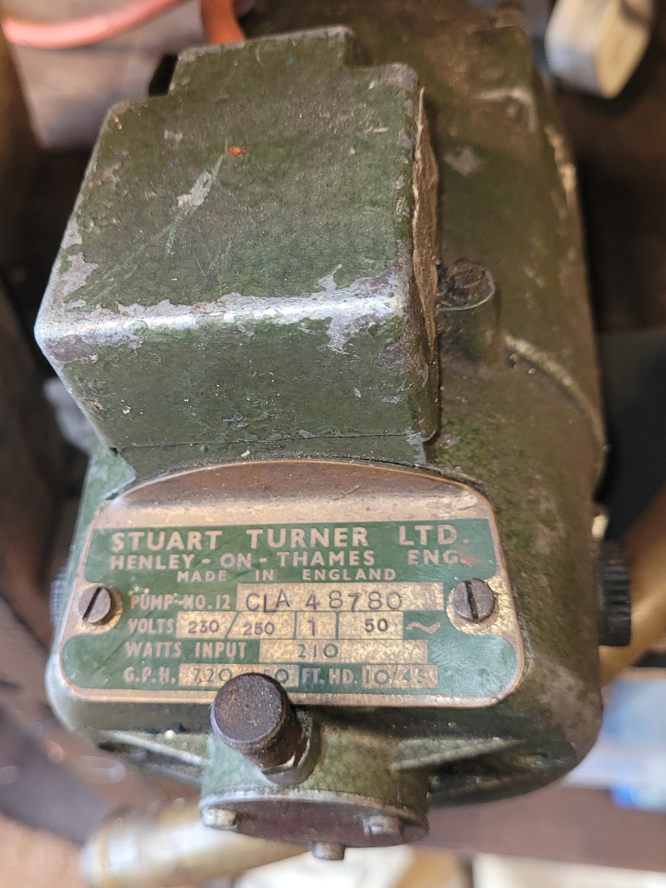 A Stuart Turner Ltd, England, 230v 210w bilge pump serial CLA48780 and a 12v hydraulic drive with motor. (2).