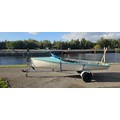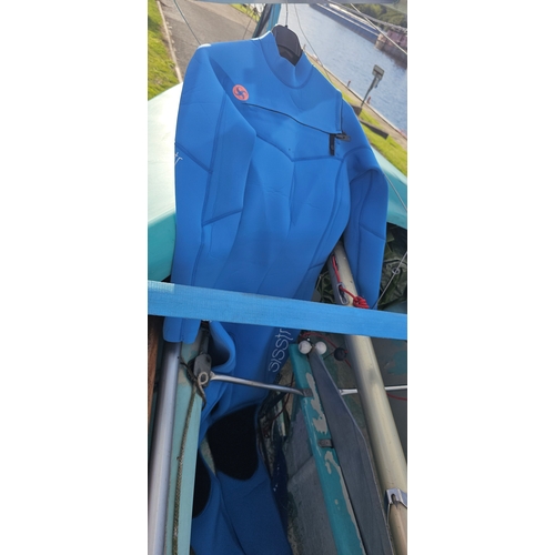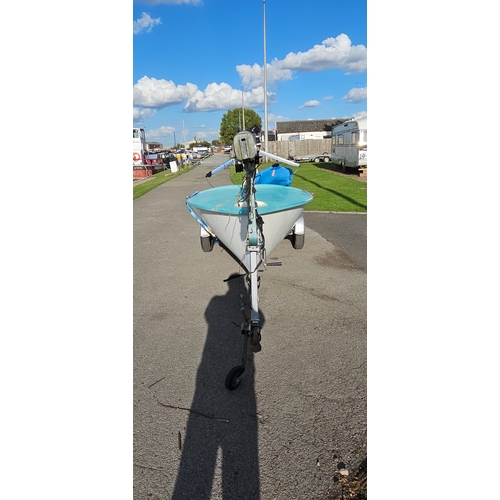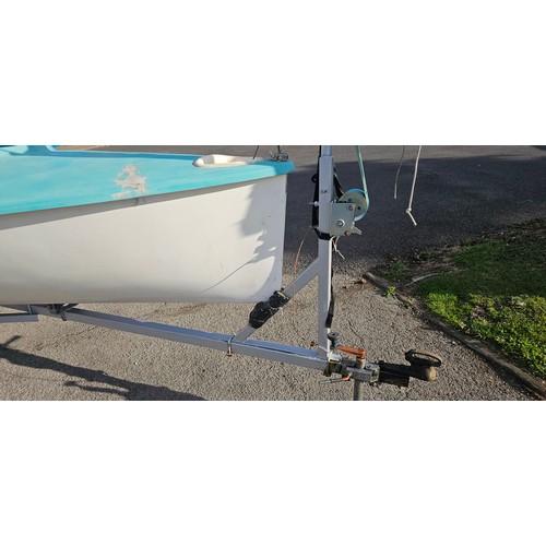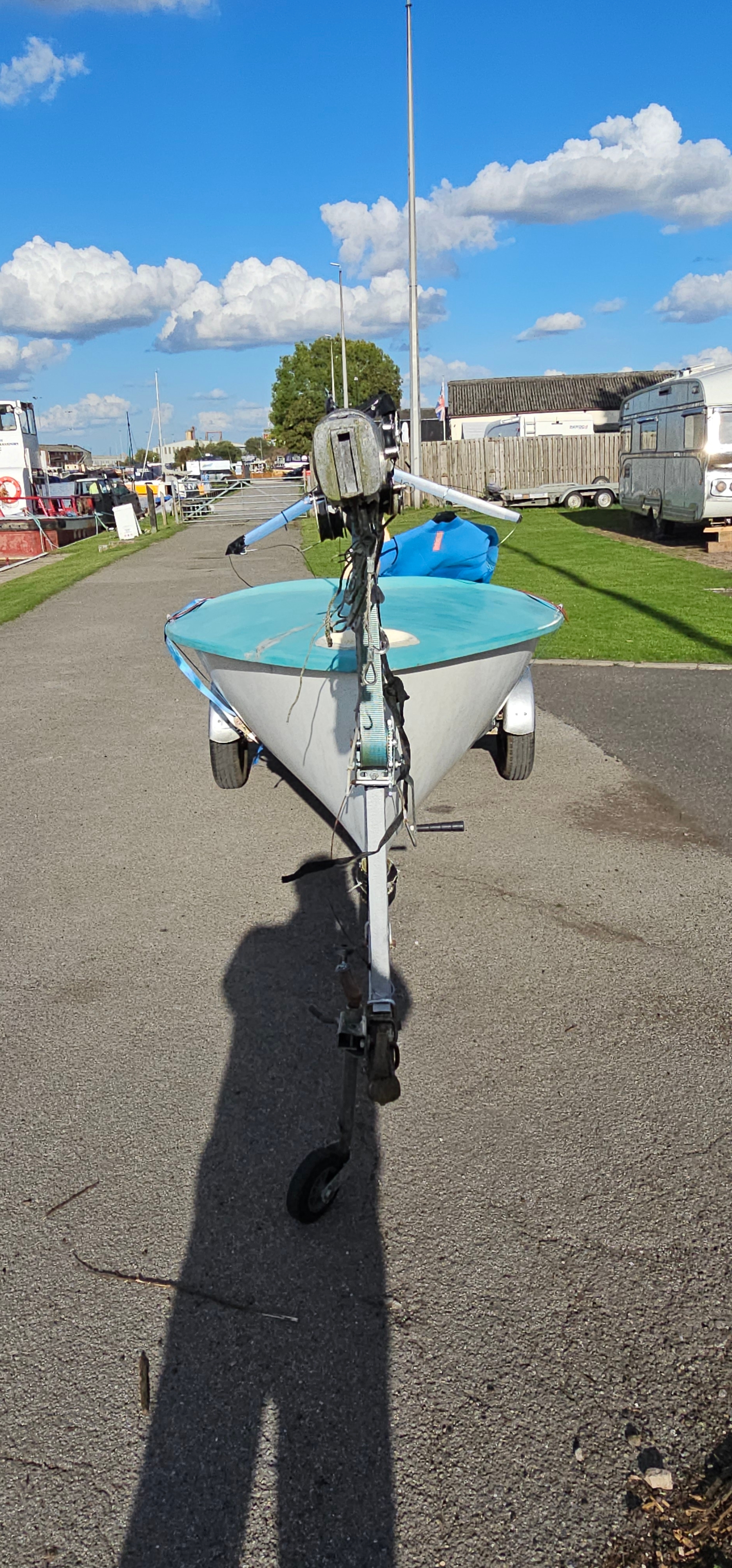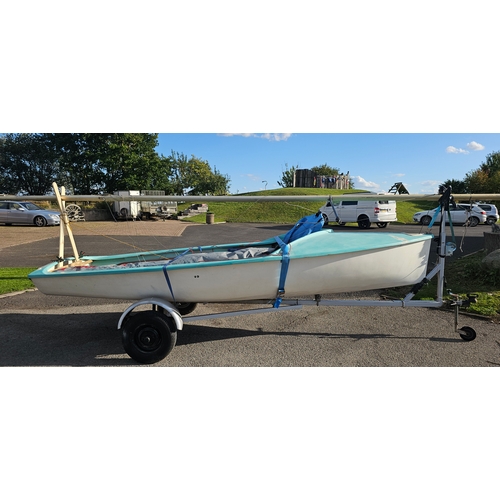 A Lark sailing dinghy, with main, spinnaker and jib, fully rigged, two rudders, dagger board, cover, ladies unused medium wetsuit, road trailer. Sail number 730.