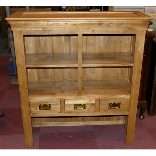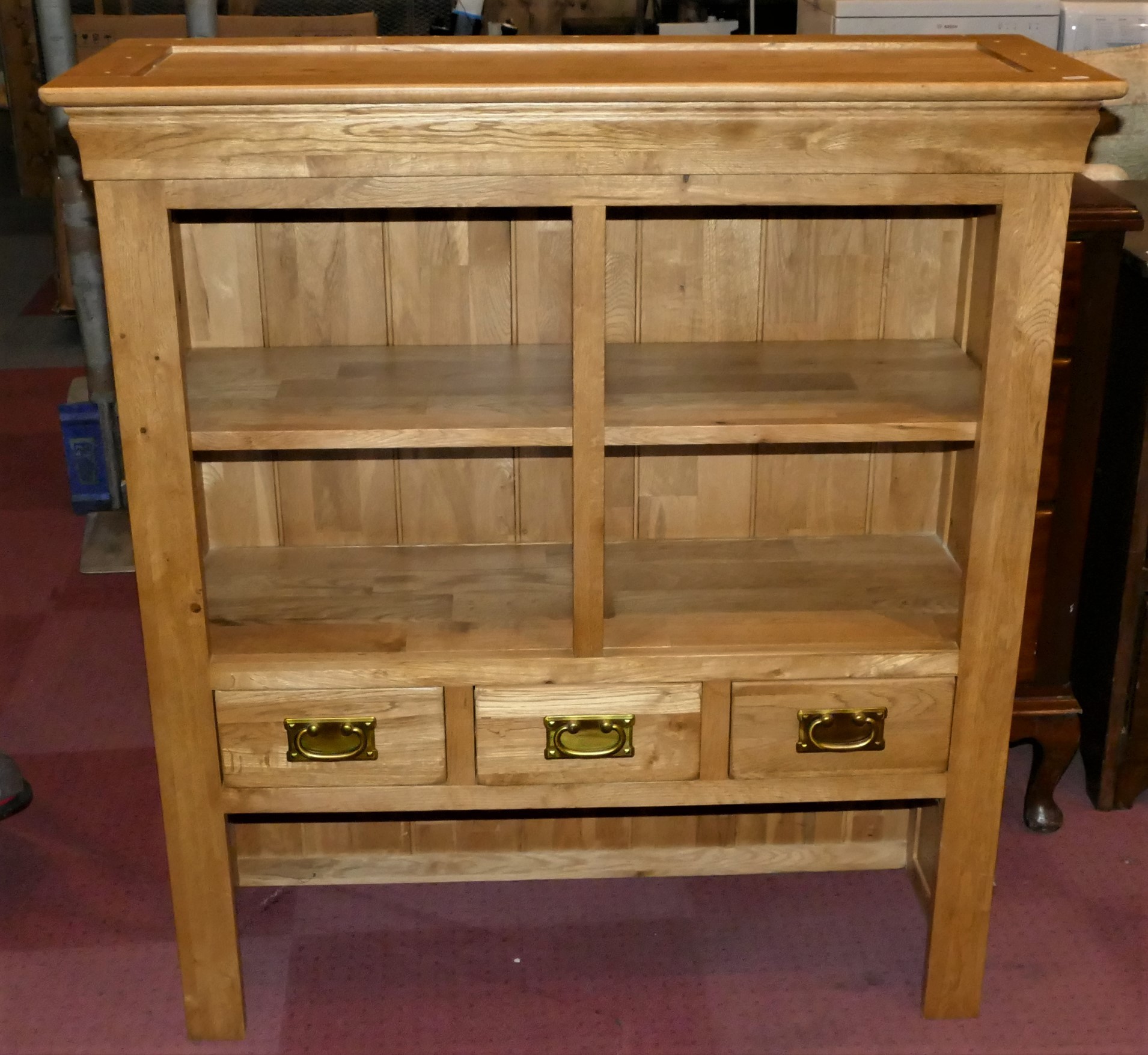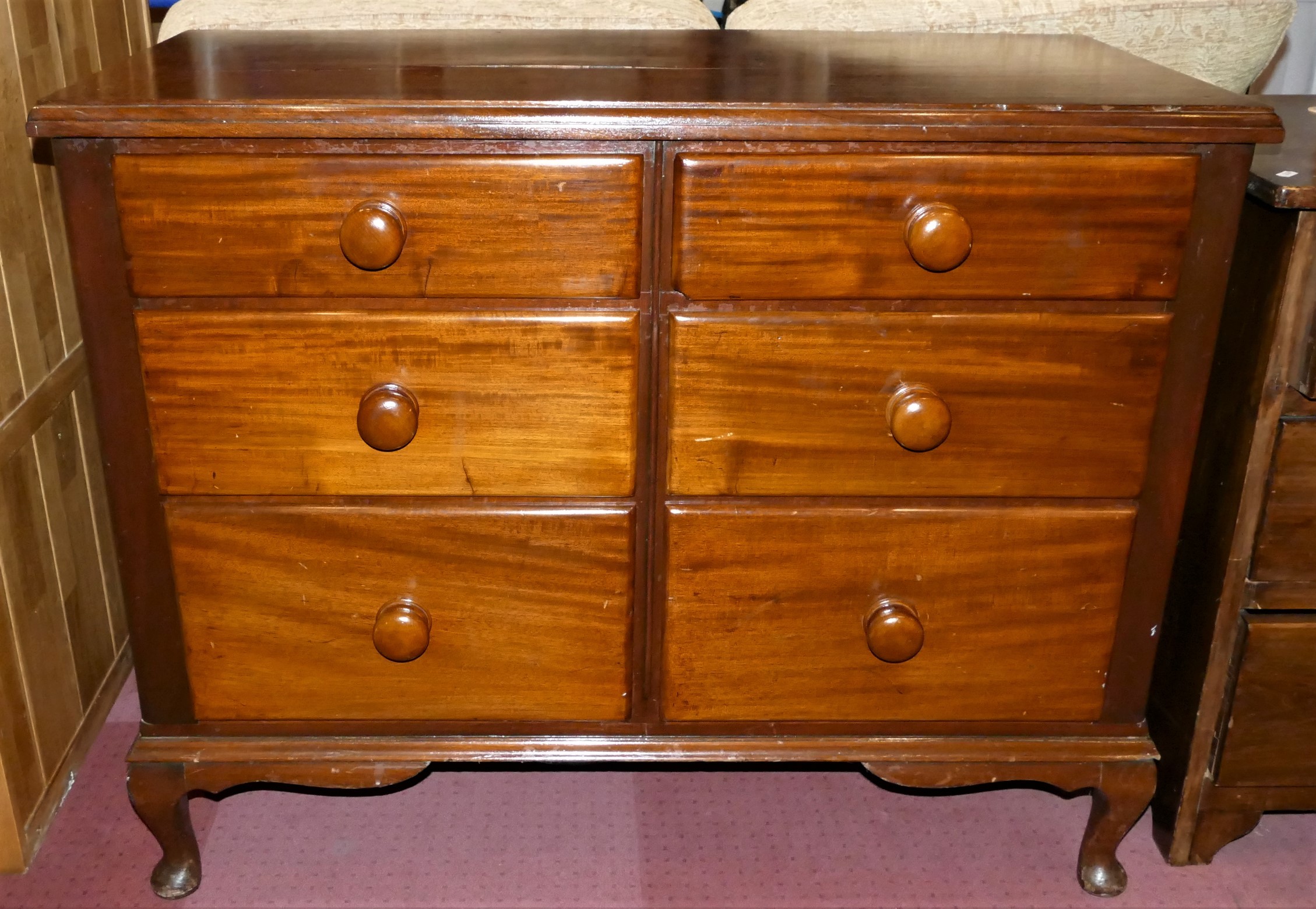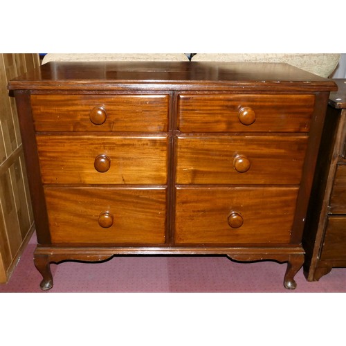 A mid 20th Century chest of drawers with two sets of three graduated drawers. W107cm, D51cm, H87cm, together with a modern solid oak dresser top, with open shelves above three drawers. H107cm, W98cm. (2)