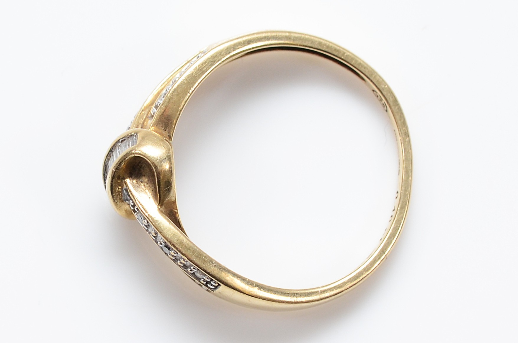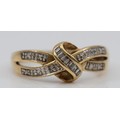 A 9ct gold vari cut diamond cross over ring, O 1/2, 2.6g