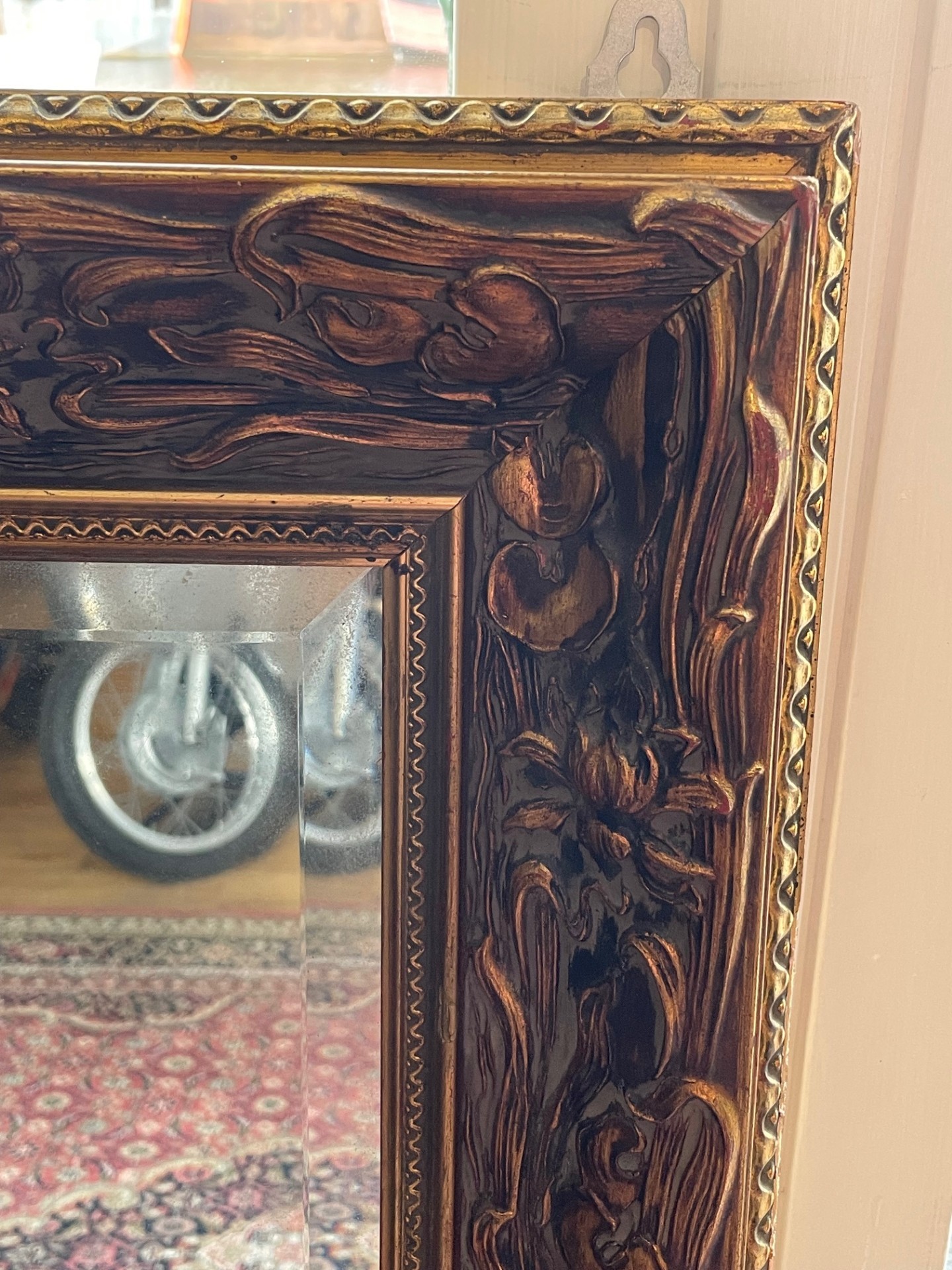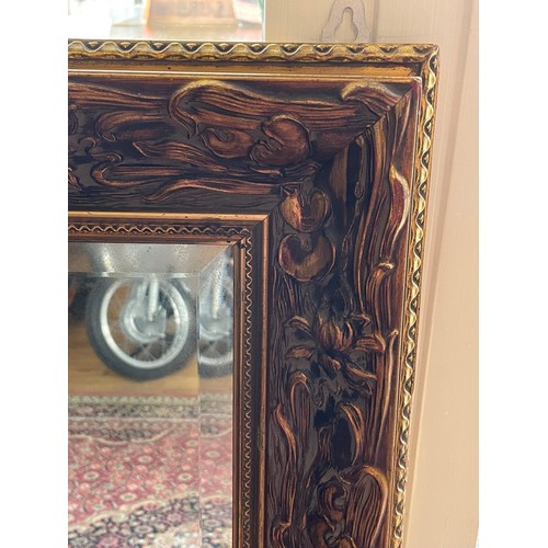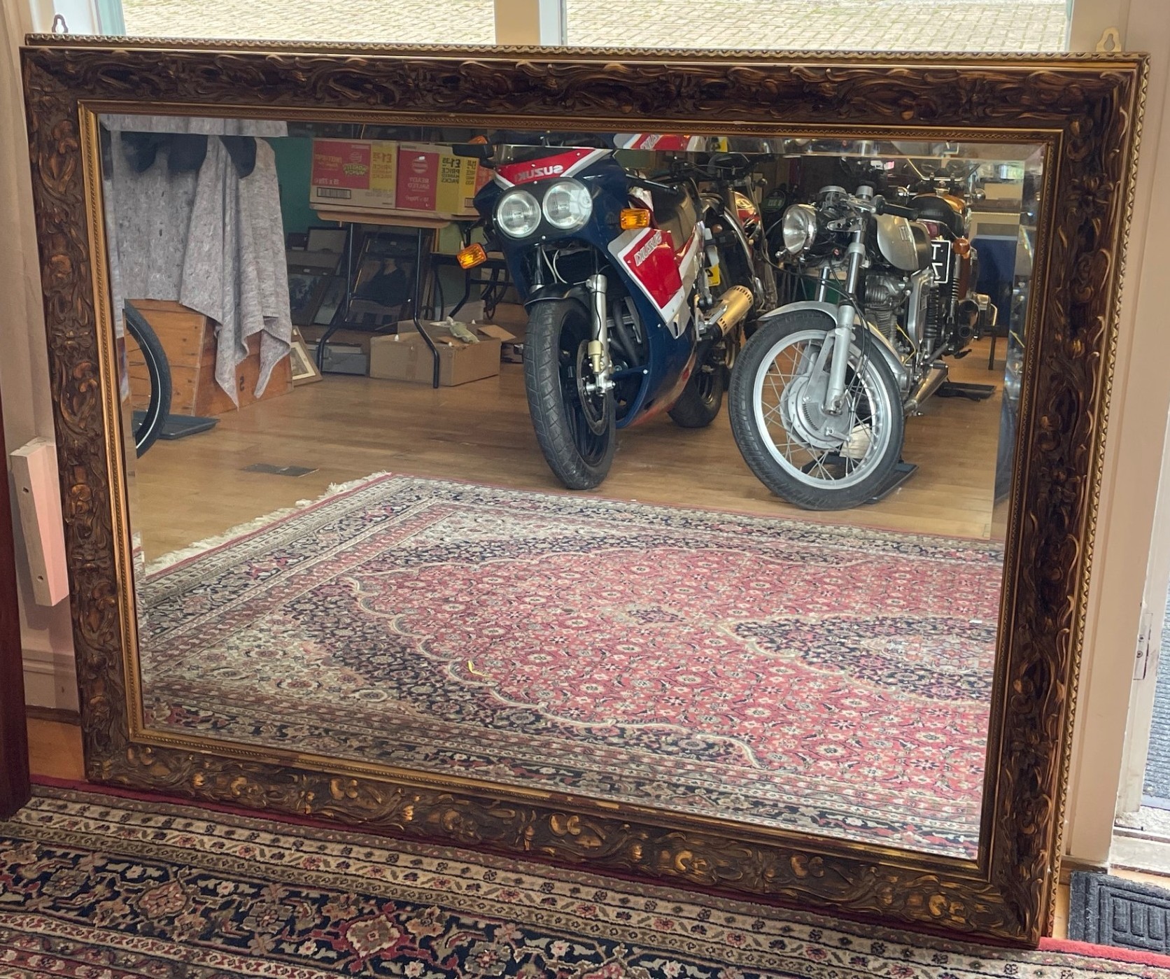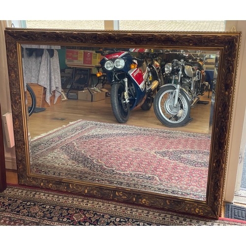 A large contemporary gilt framed bevelled edge overmantle/wa...