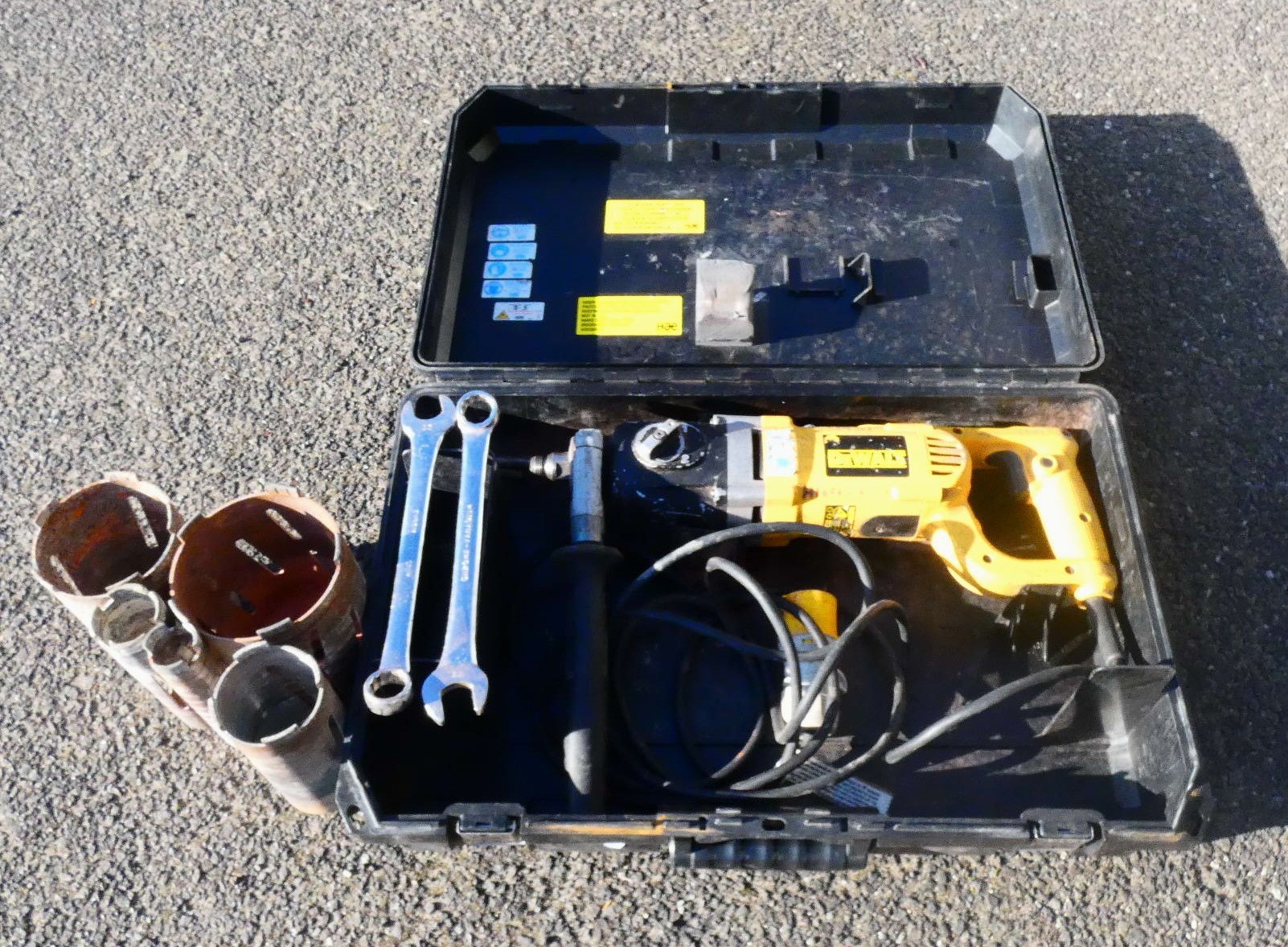 A boxed DeWalt D21580-LX 110v 1310w diamond drill with attac...