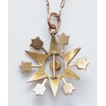 A 9ct gold seed pearl and turquoise star pendant on a chain,...