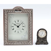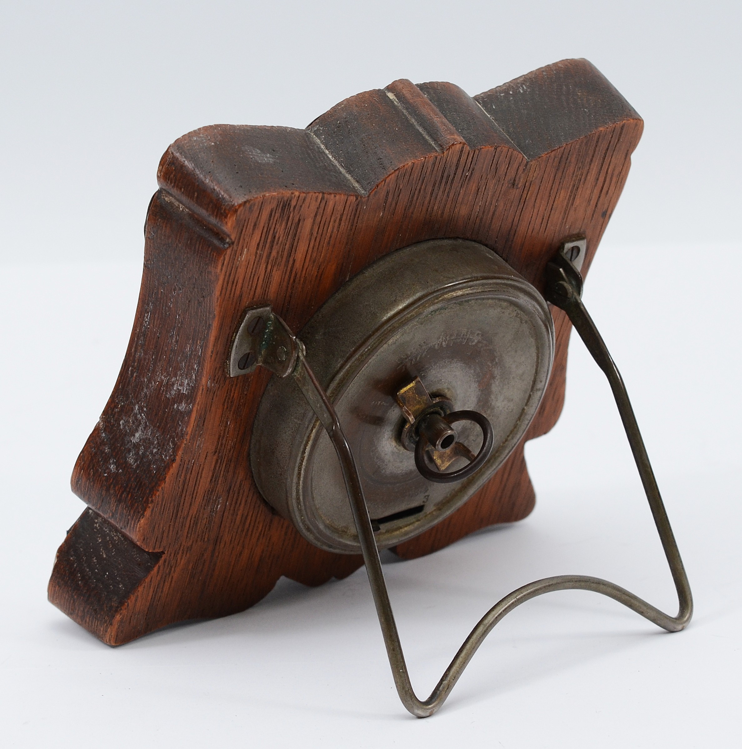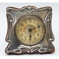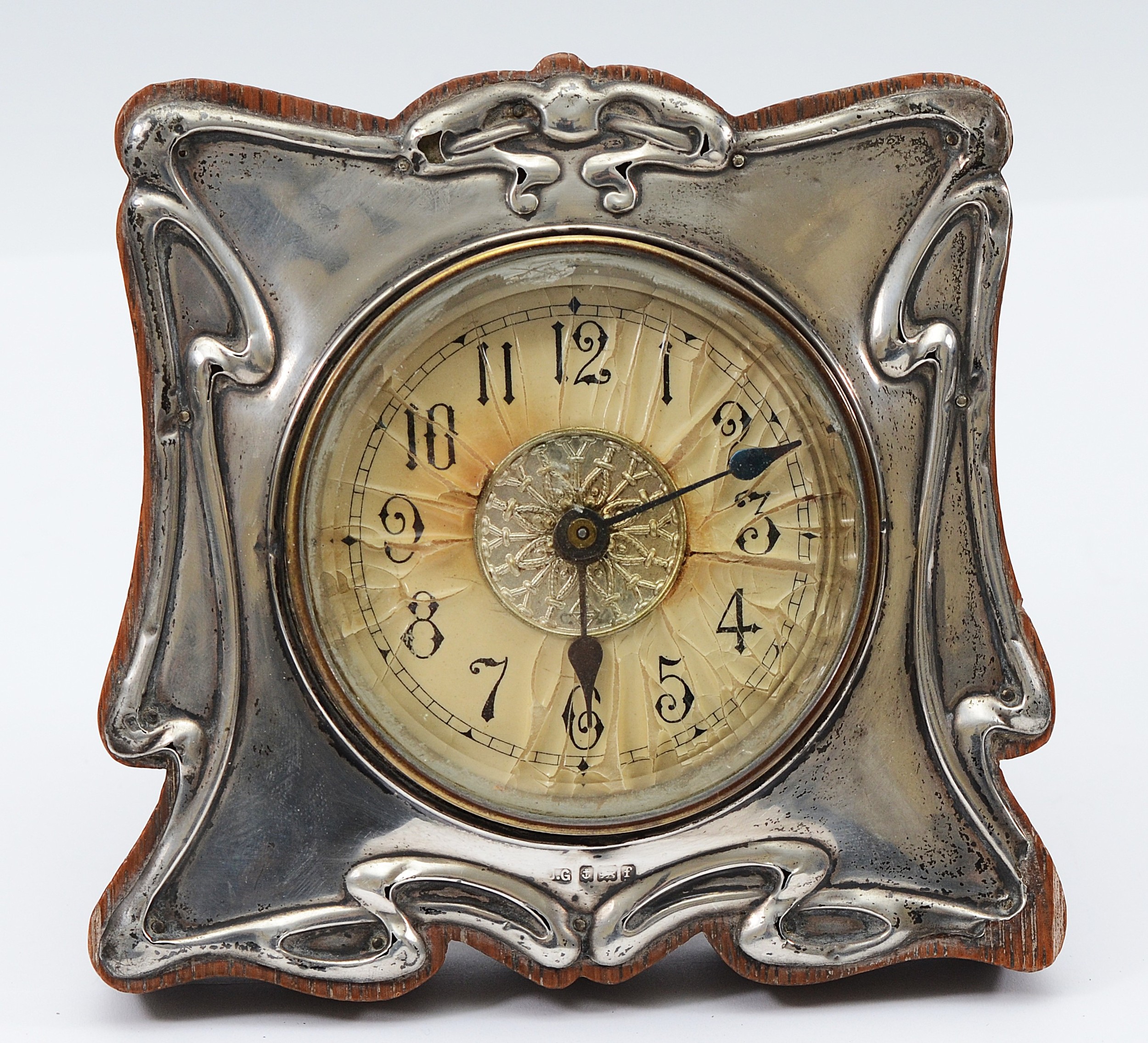 An Art Nouveau silver desk clock, Birmingham 1905, by Joseph Gloster, with oak frame, 13 x 13cm.