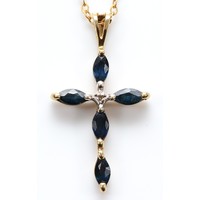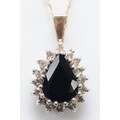 A 9ct gold sapphire and single cut diamond cluster pendant on a chain, 2g