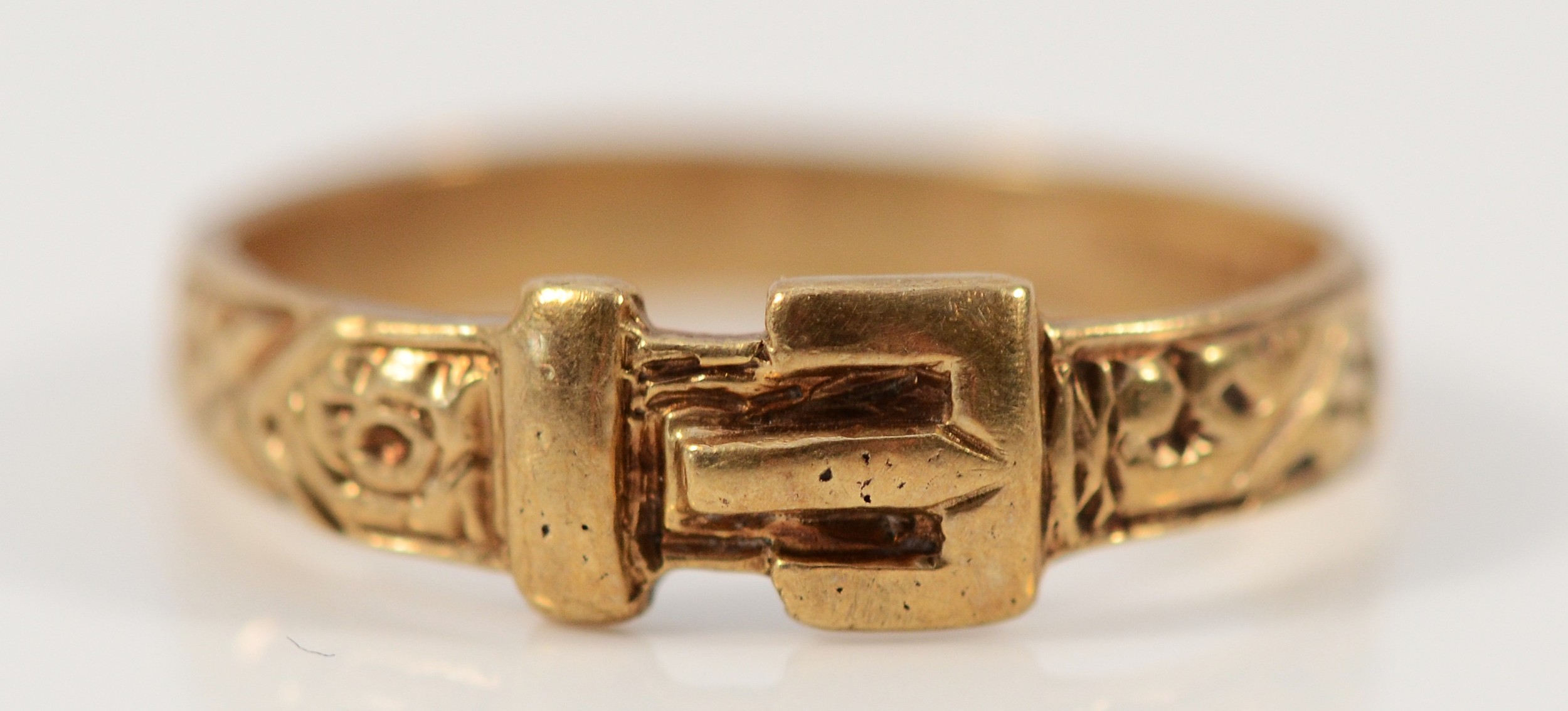 A 9ct gold patterned buckle ring, London 1980, N, 1.8g