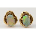 A pair of 9ct gold opal diamond earrings with scroll backs, ...