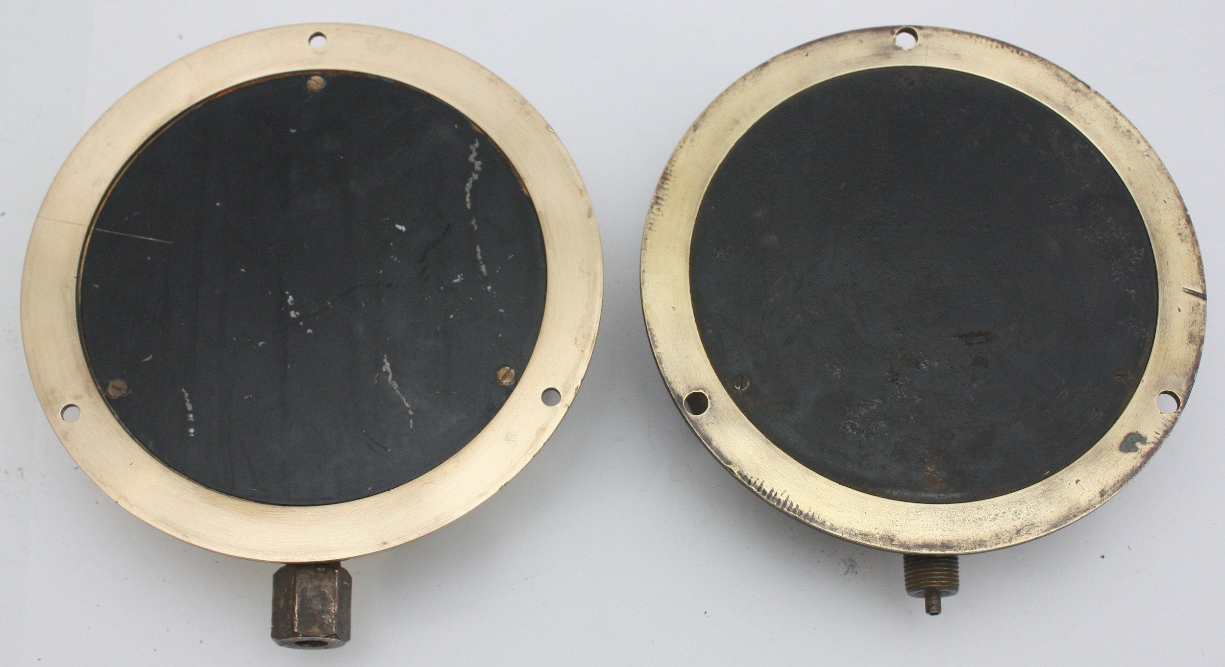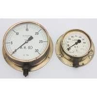 Two brass cased pressure gauges- dials marked BR(S) and BR(S...