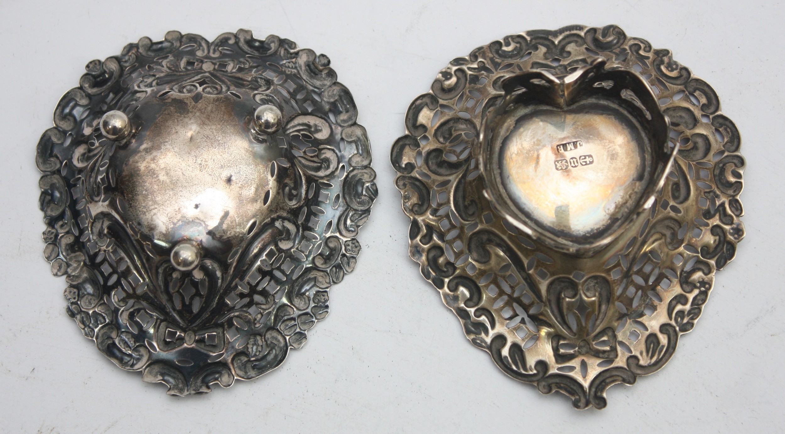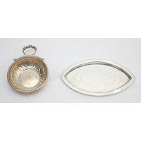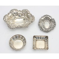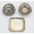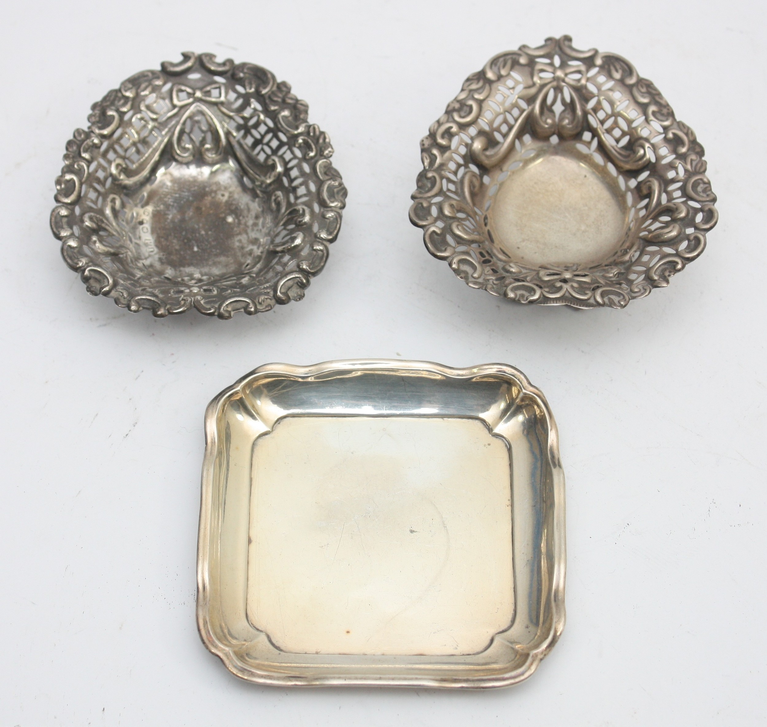 A silver trinket tray, London 1909, together with two pierced silver trinket dishes, Birmingham 1816, 1894, 100gm.