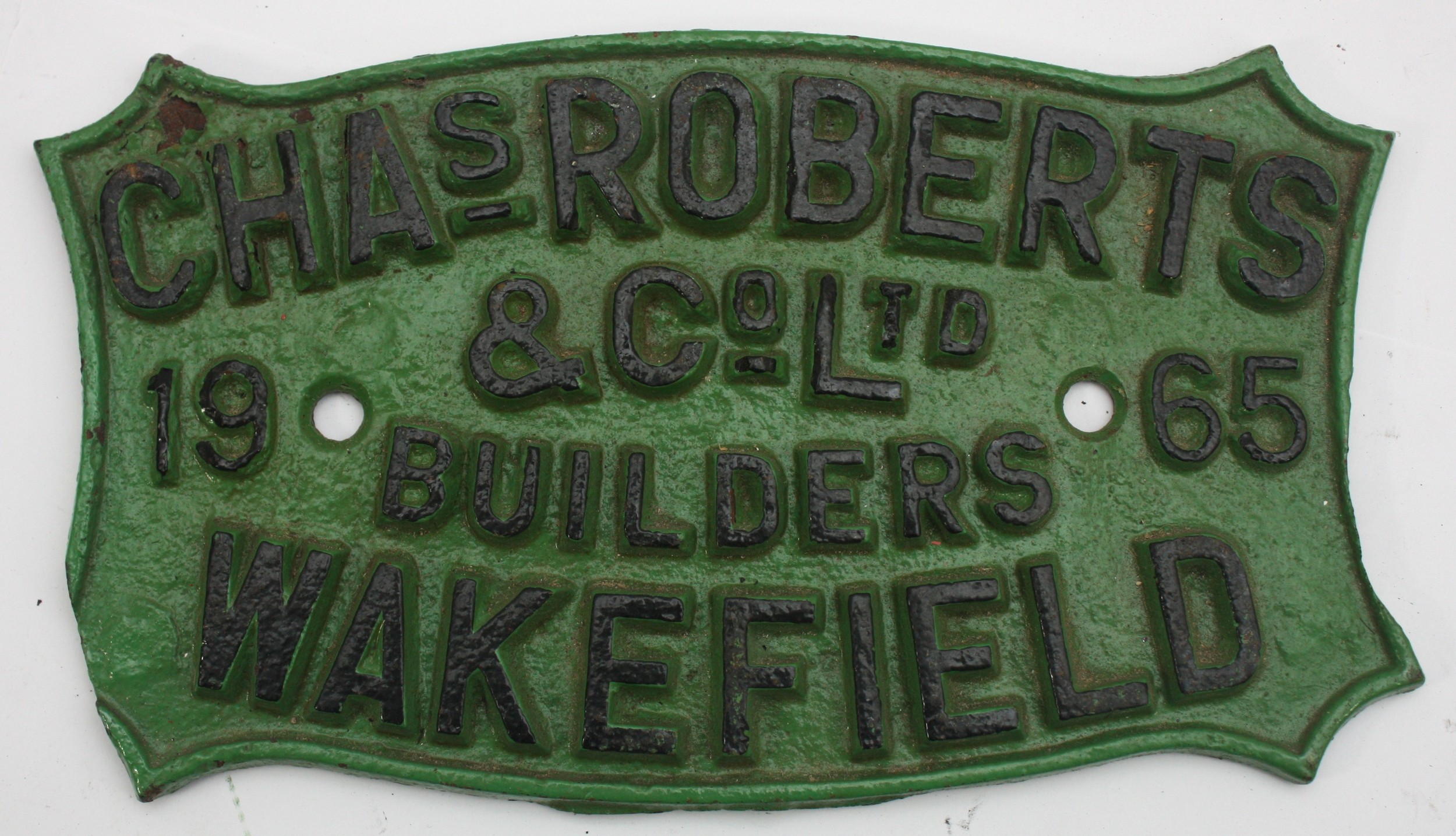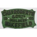 A cast iron wagon builders plate- Chas. Roberts & Co Ltd, Wakefield 1965, 27cm x 16.