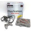 A PlayStation 1 console with controllers, SCPH-7502 B, in original box.
