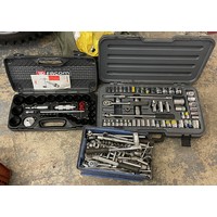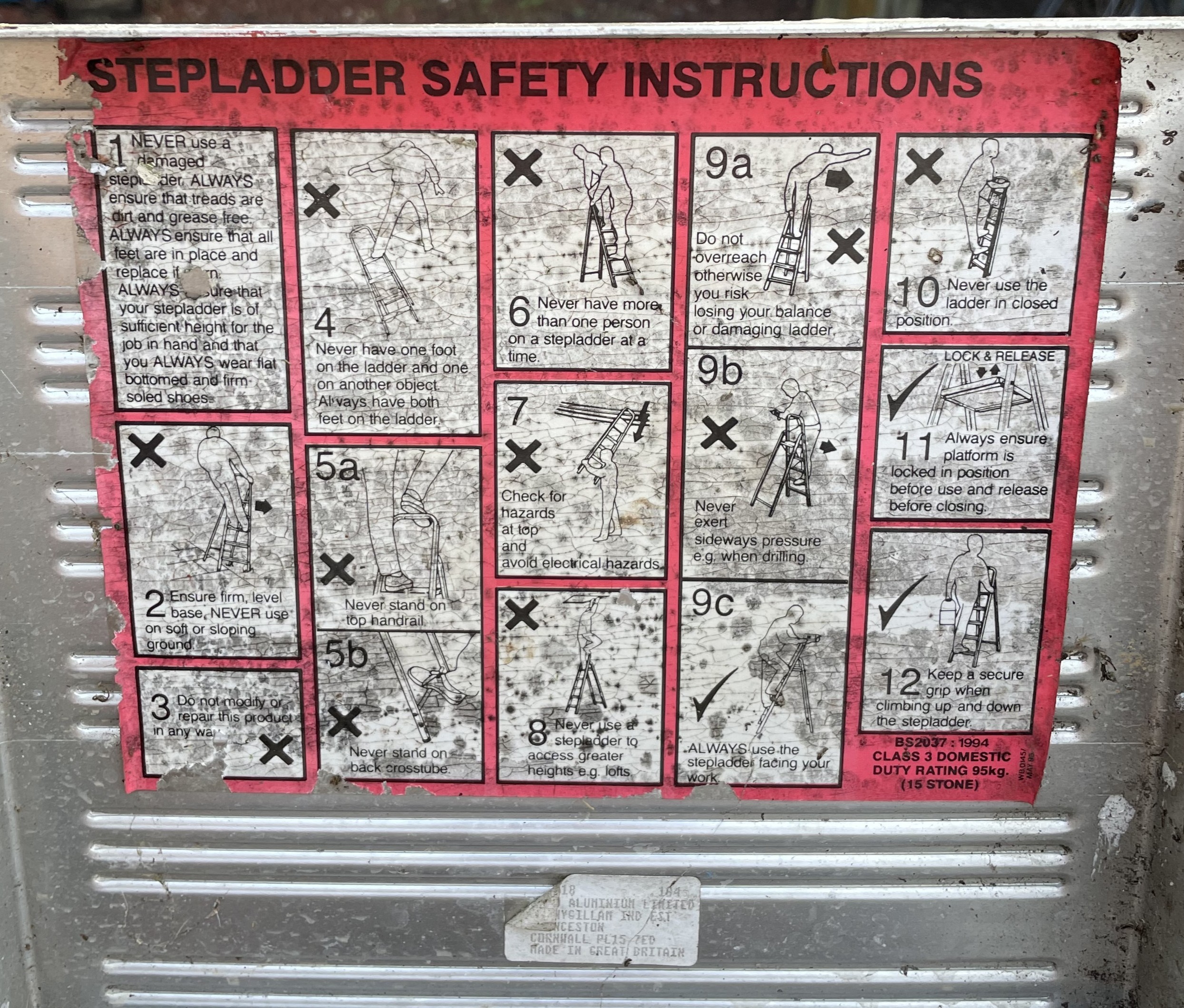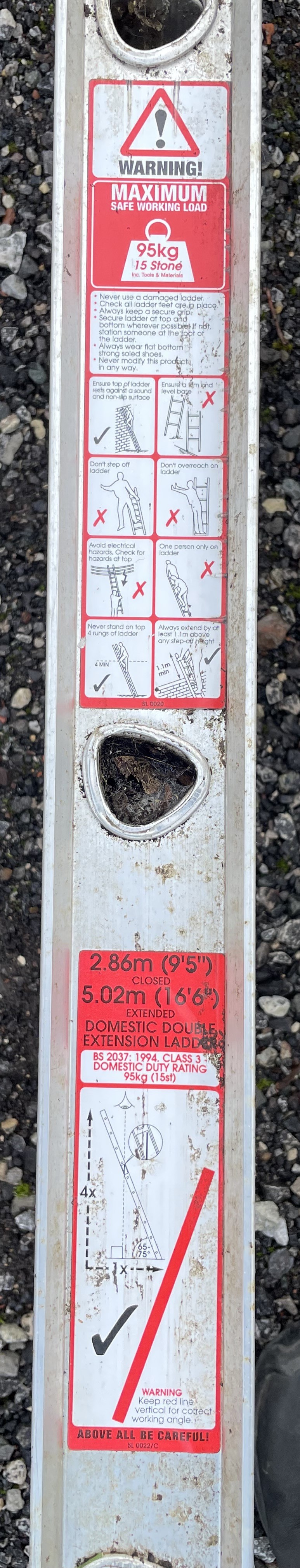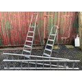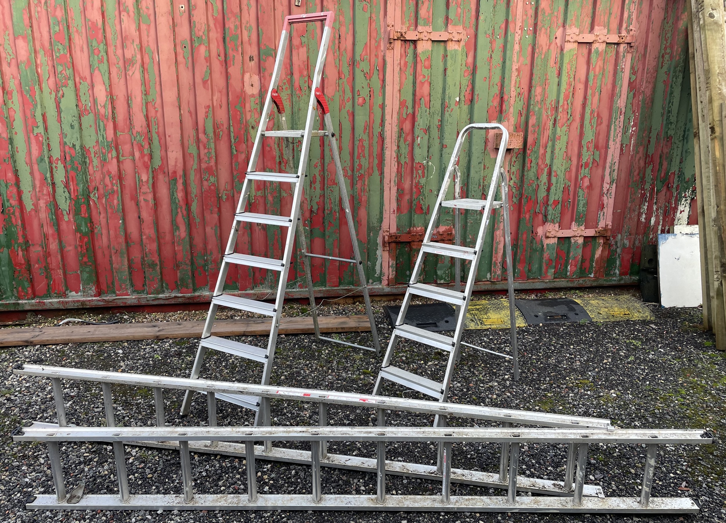 A galvanised domestic double extension ladder (5.02m extended) together with two folding step ladders. (3)